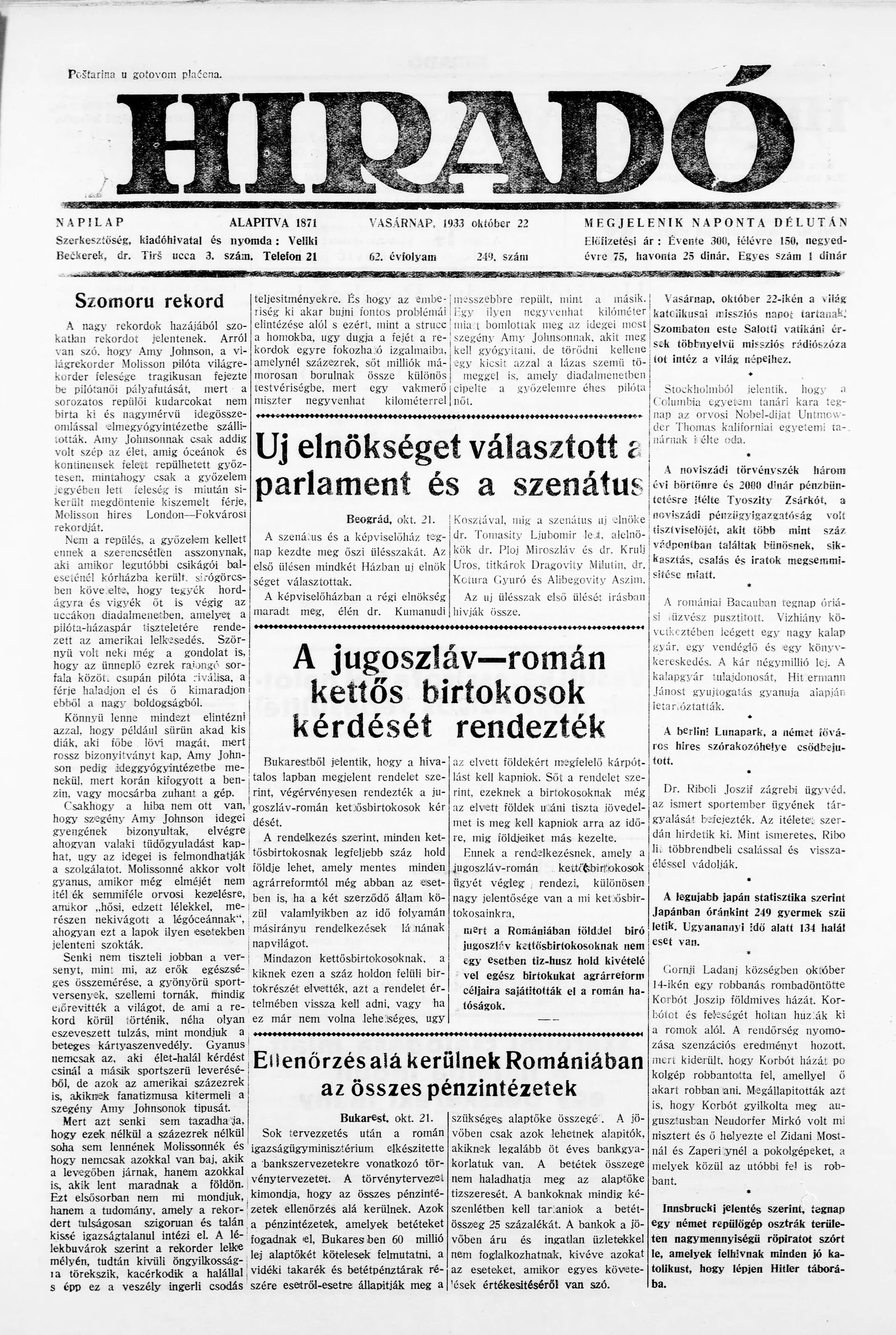 Híradó, 62. évf. 1933. október 22. 249. sz.