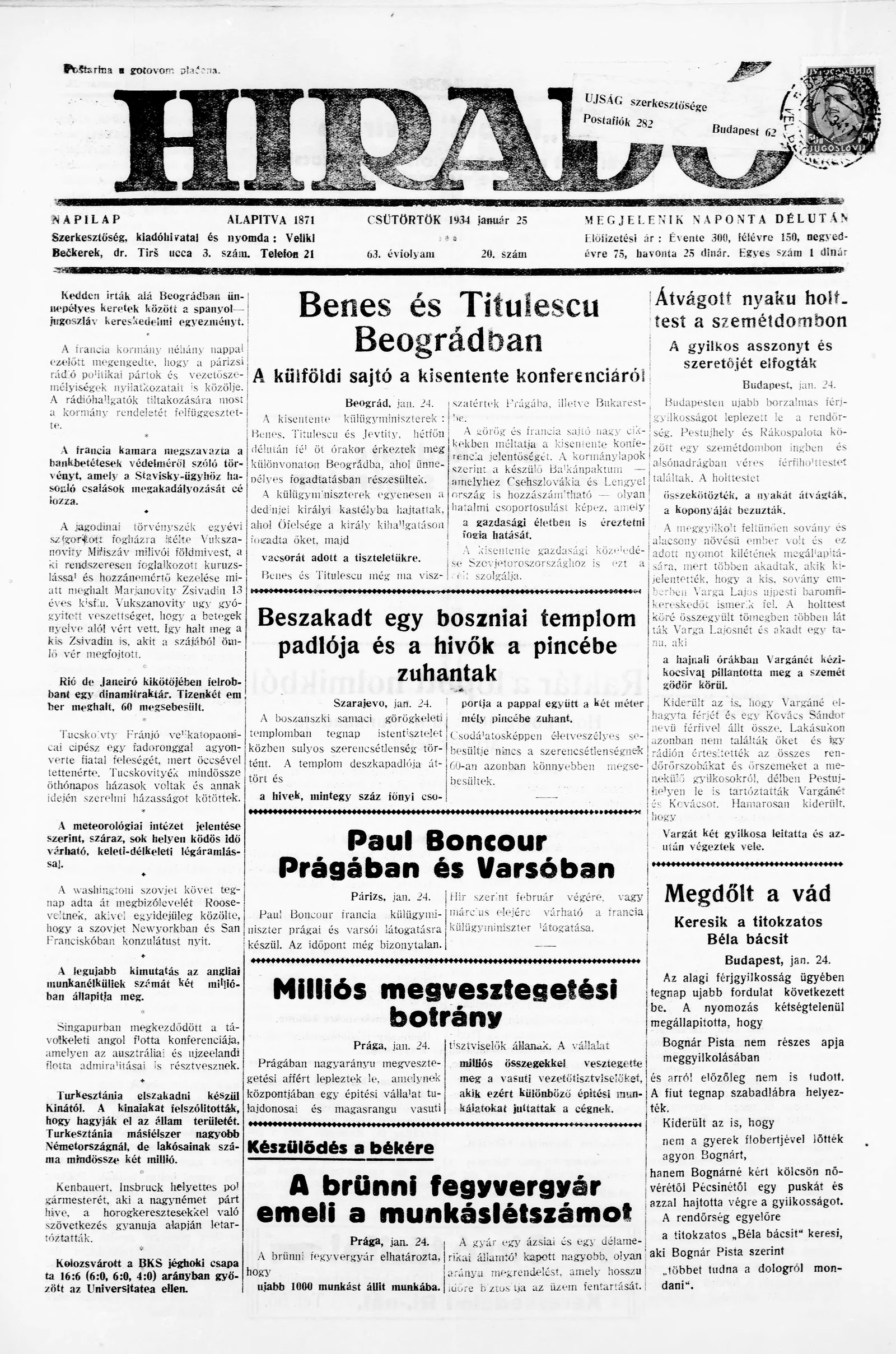 Híradó, 63. évf. 1934. január 25. 20. sz.