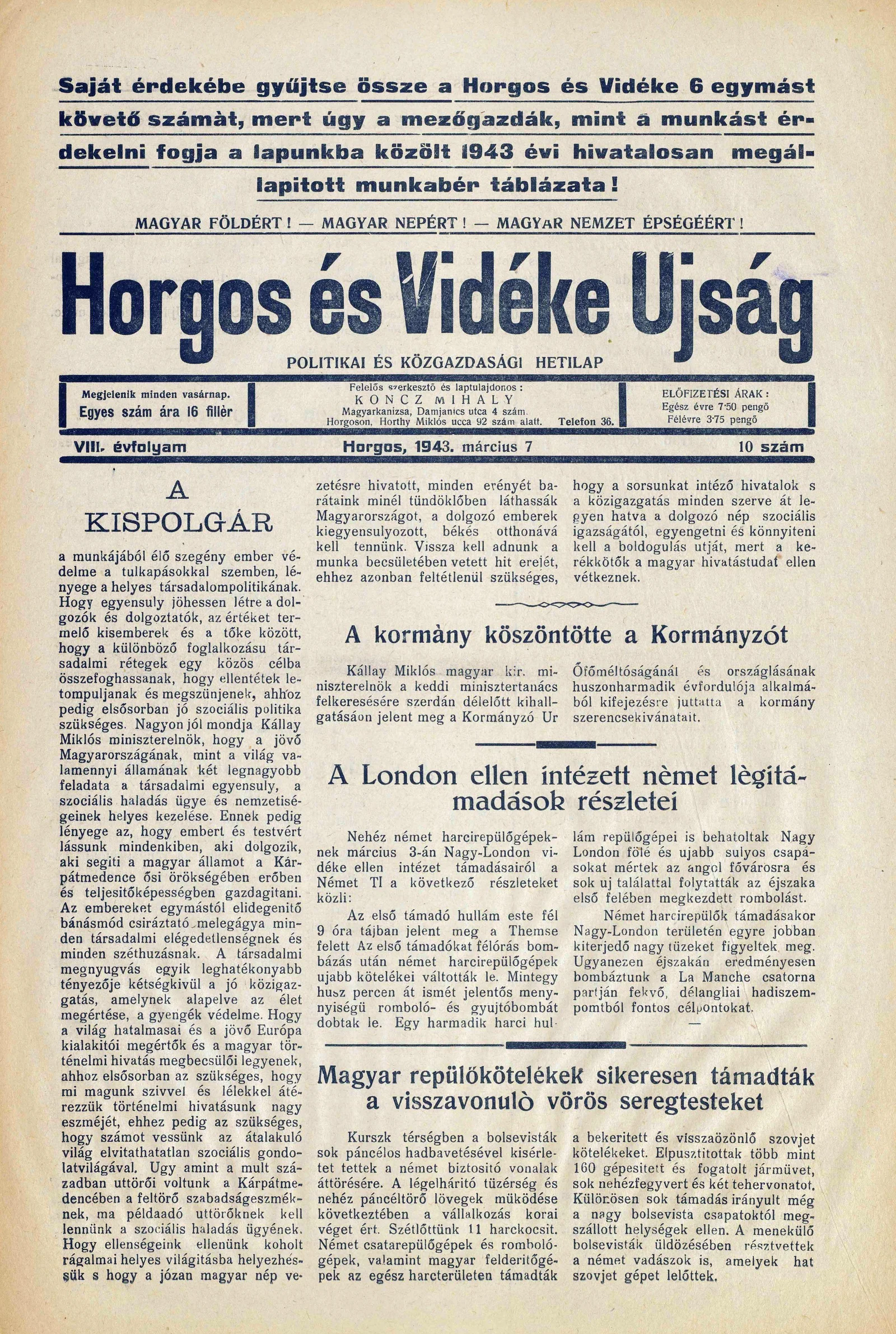 Horgos és vidéke, 8. évf. 1943. március 7. 10. sz.