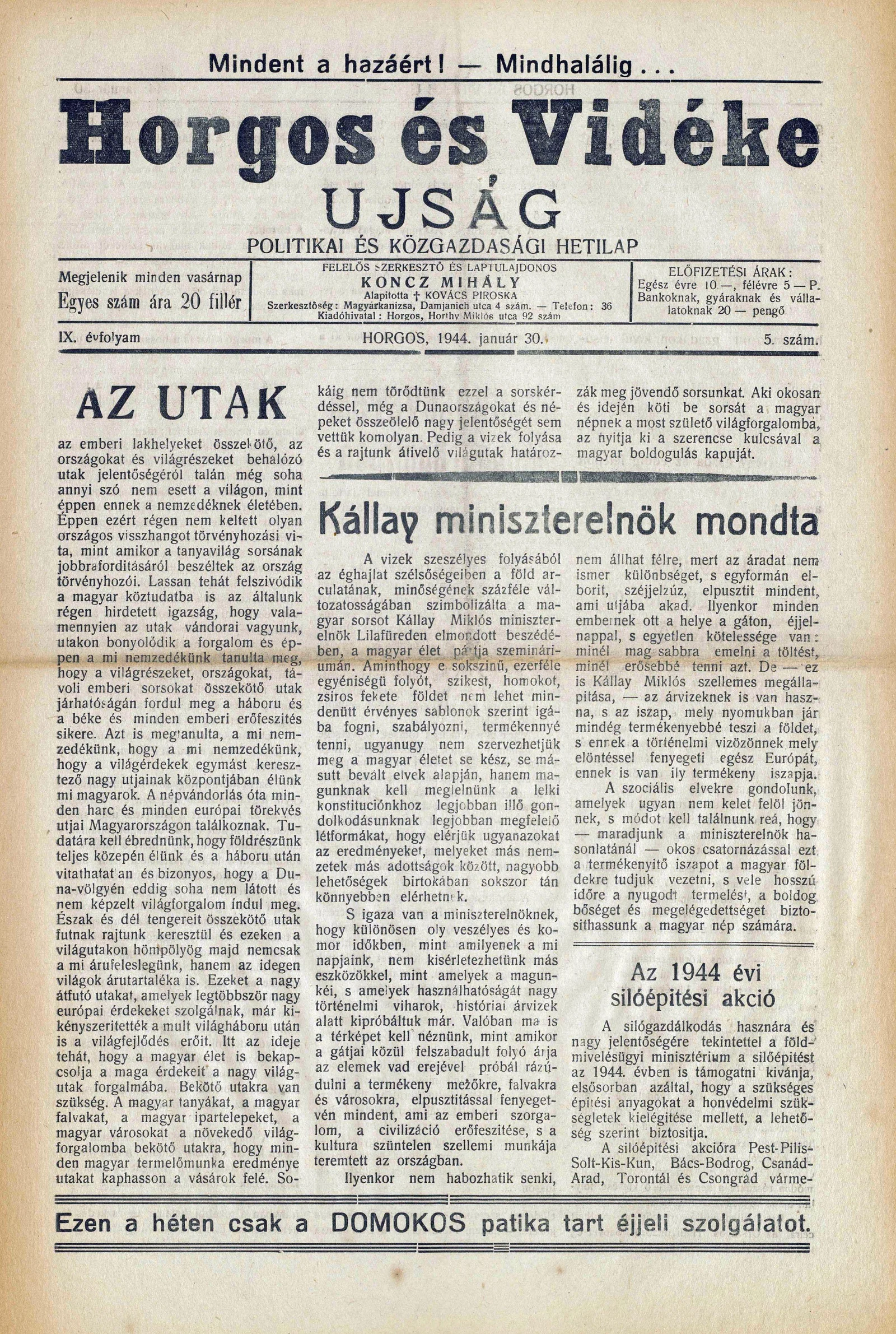 Horgos és vidéke, 9. évf. 1944. január 30. 5. sz.