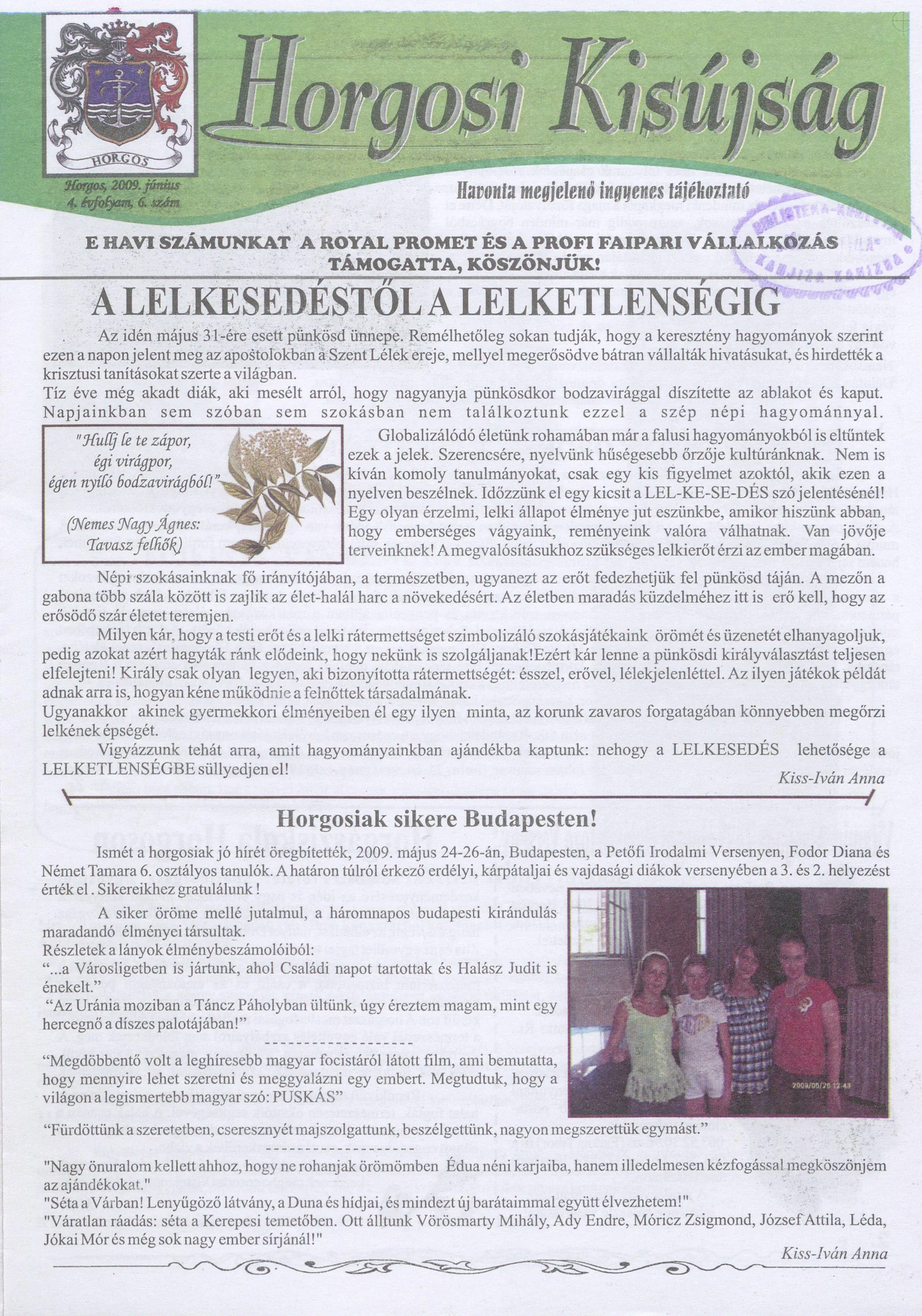 Horgosi Kisújság, 4. évf. 2009. június. 6. sz.