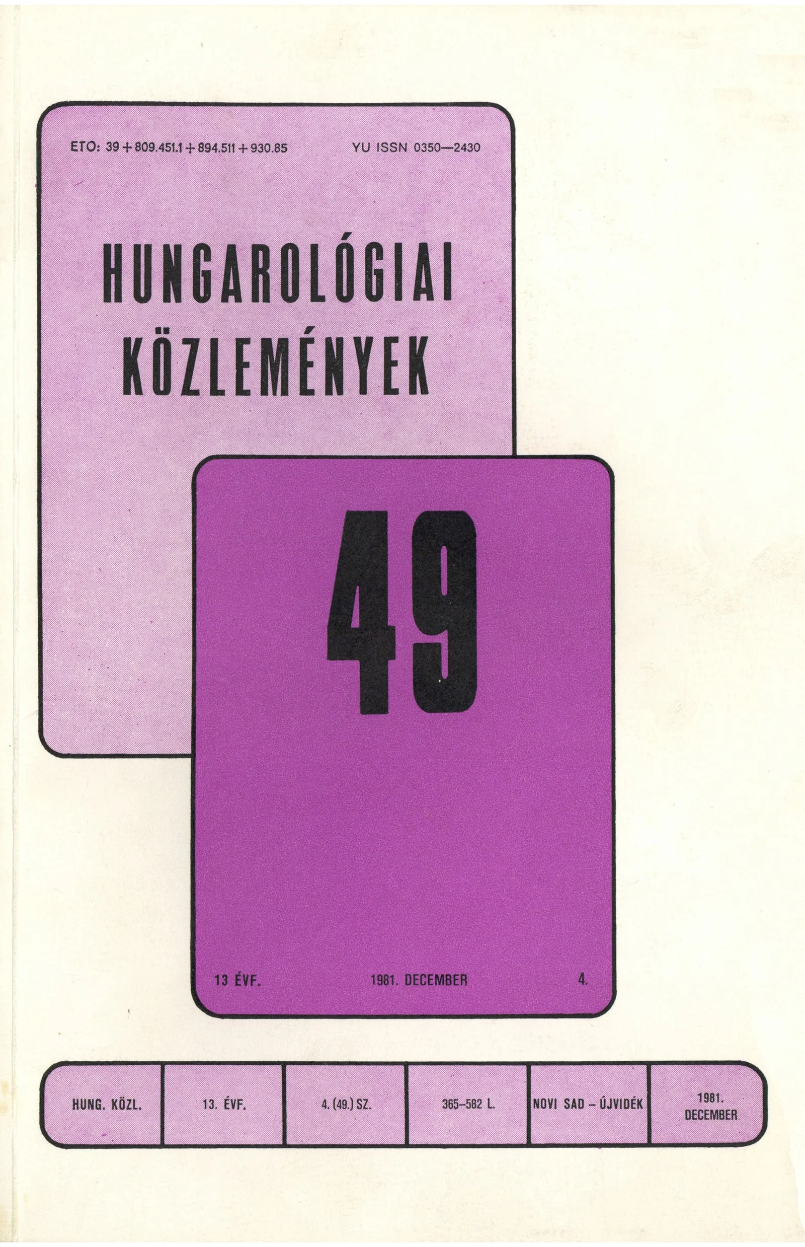 Hungarológiai Közlemények, 13. évf. 1981. december 1. 49. sz. 365–577. oldal