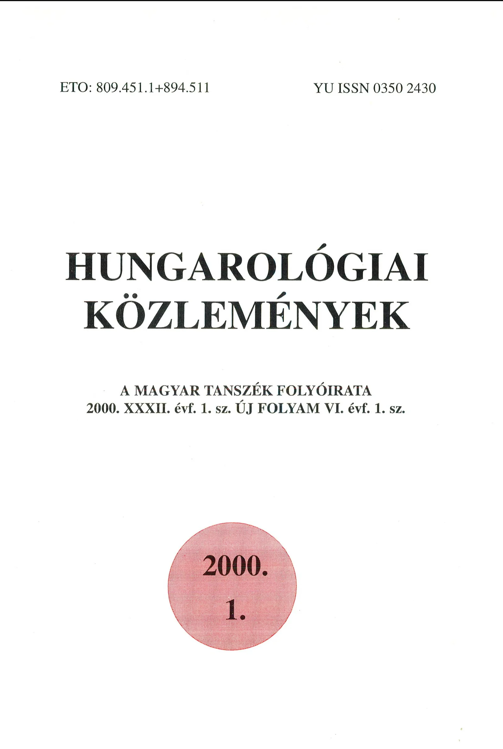 Hungarológiai Közlemények, 32. évf. 2000. január 1. 1. sz. 1–154. oldal