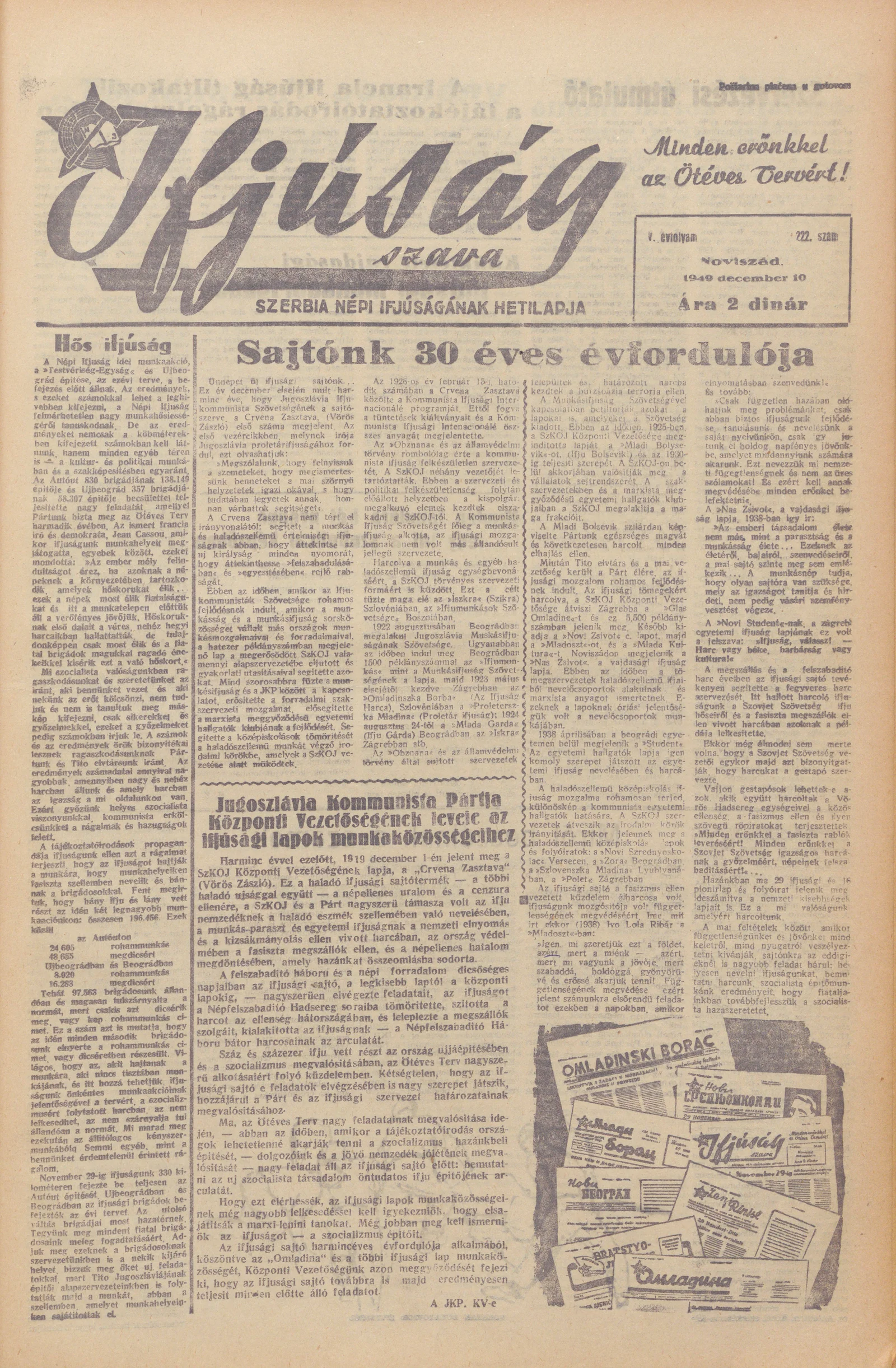 Ifjúság Szava, 5. évf. 1949. december 10. 222. sz.
