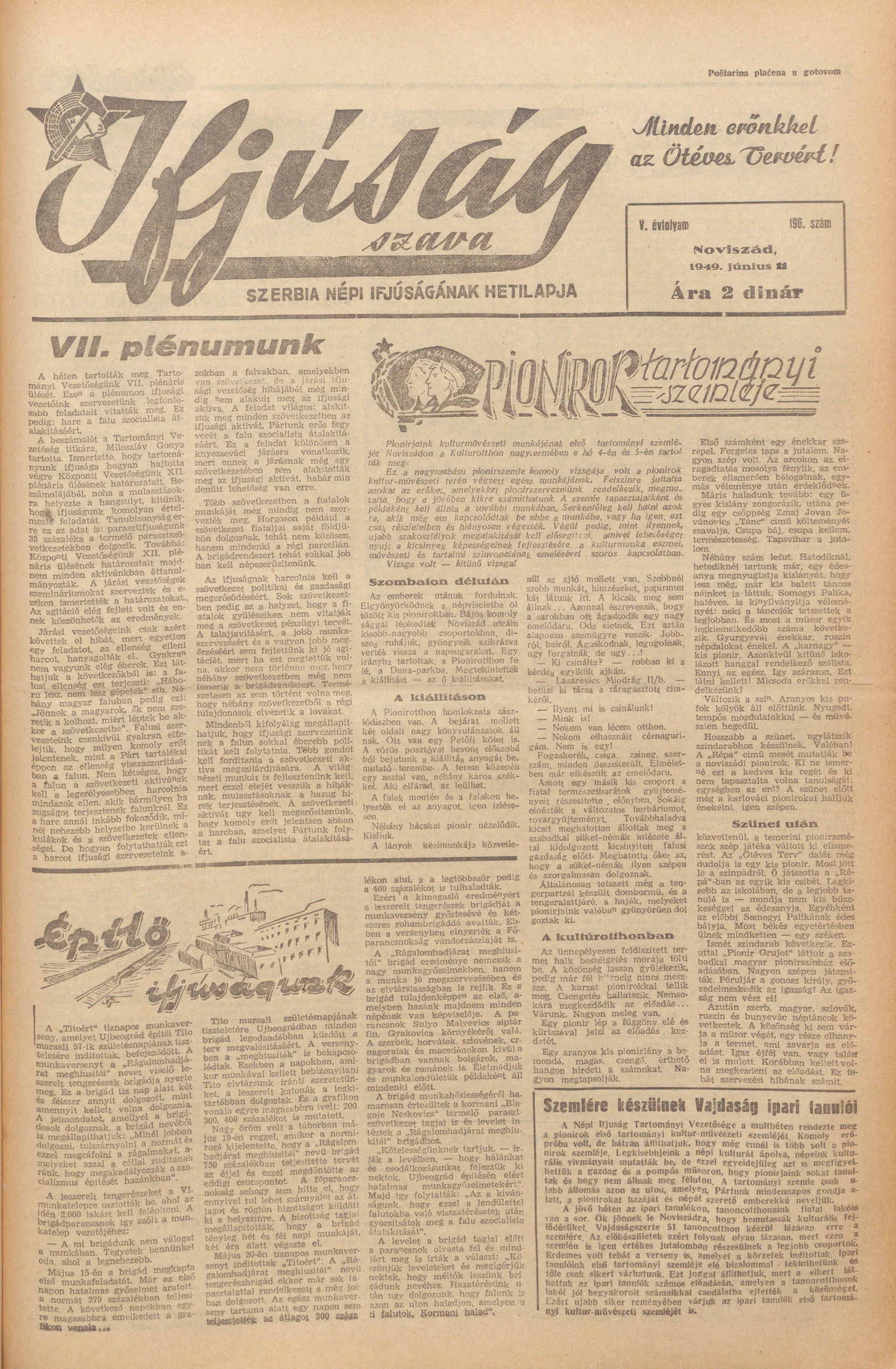Ifjúság Szava, 5. évf. 1949. június 11. 196. sz.
