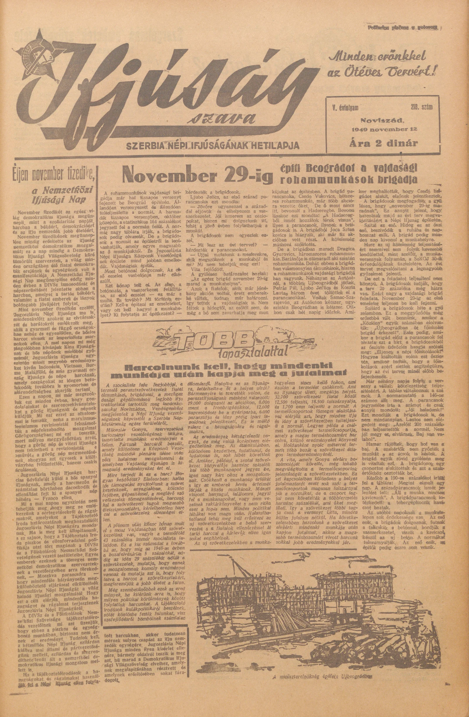 Ifjúság Szava, 5. évf. 1949. november 12. 218. sz.