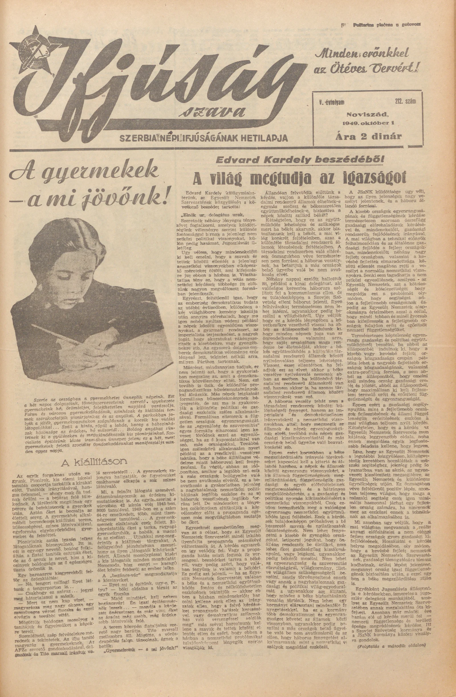 Ifjúság Szava, 5. évf. 1949. október 1. 212. sz.