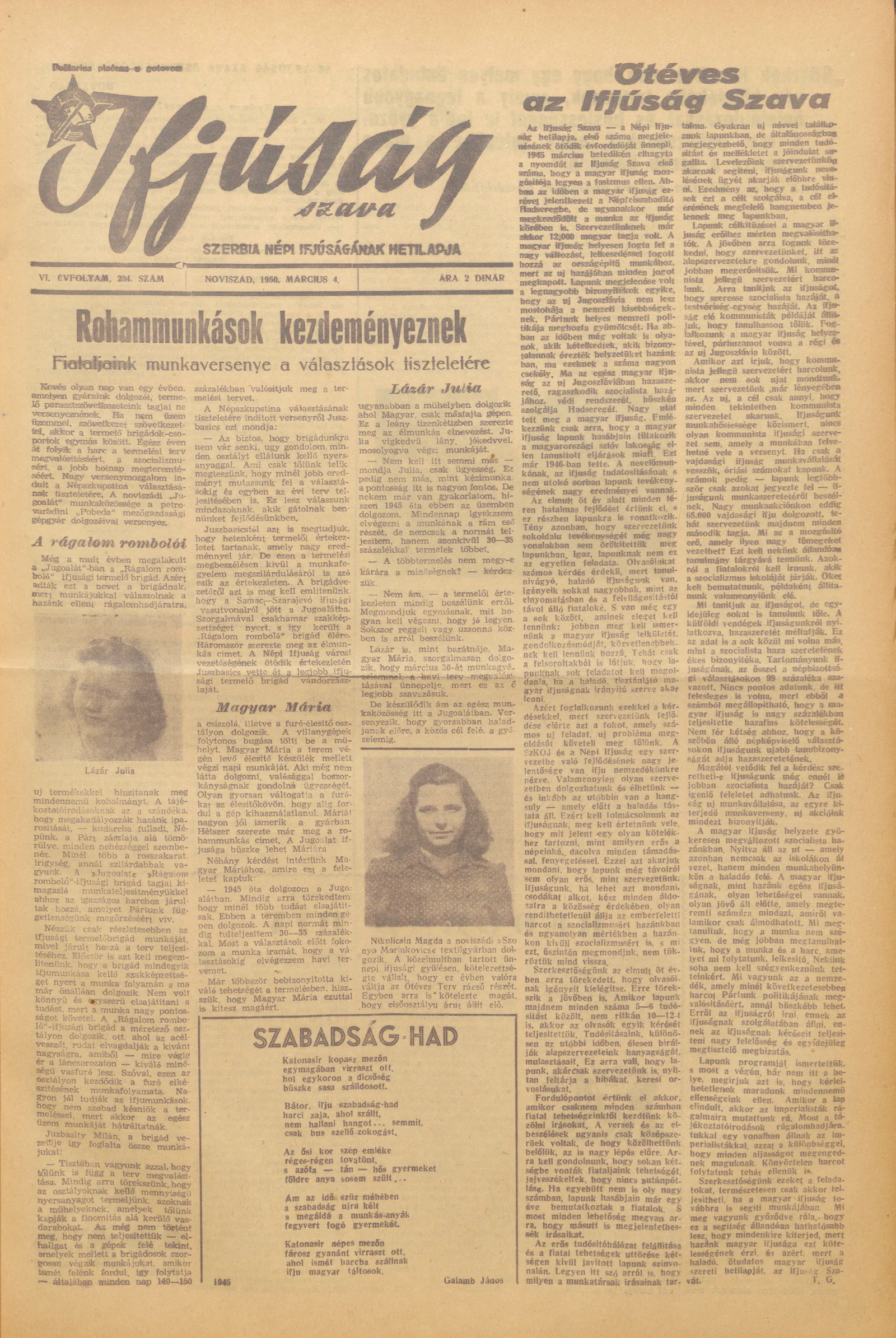 Ifjúság Szava, 6. évf. 1950. március 4. 234. sz.