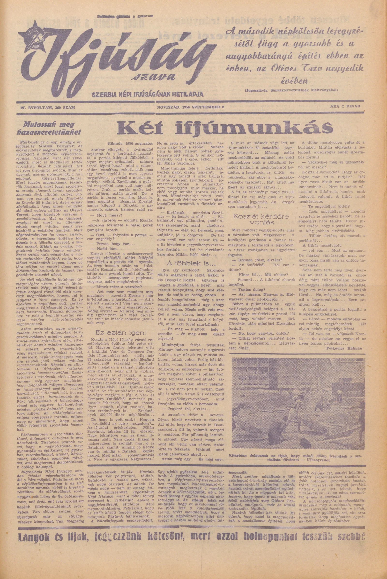 Ifjúság Szava, 6. évf. 1950. szeptember 2. 260. sz.