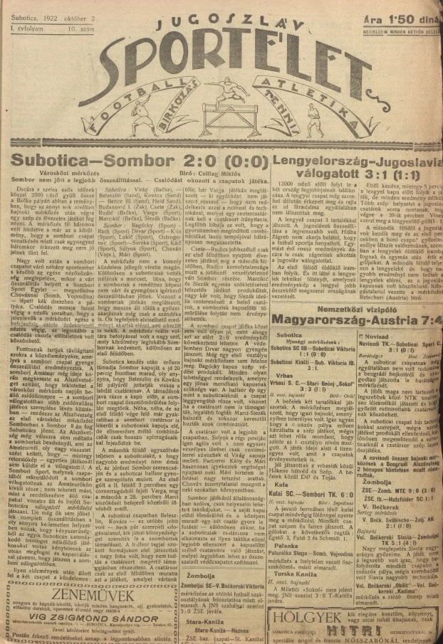 Jugoszláv sportélet, 1. évf. 1922. október 2. 10. sz.