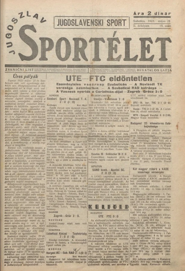 Jugoszláv sportélet, 2. évf. 1923. május 28. 19. sz.