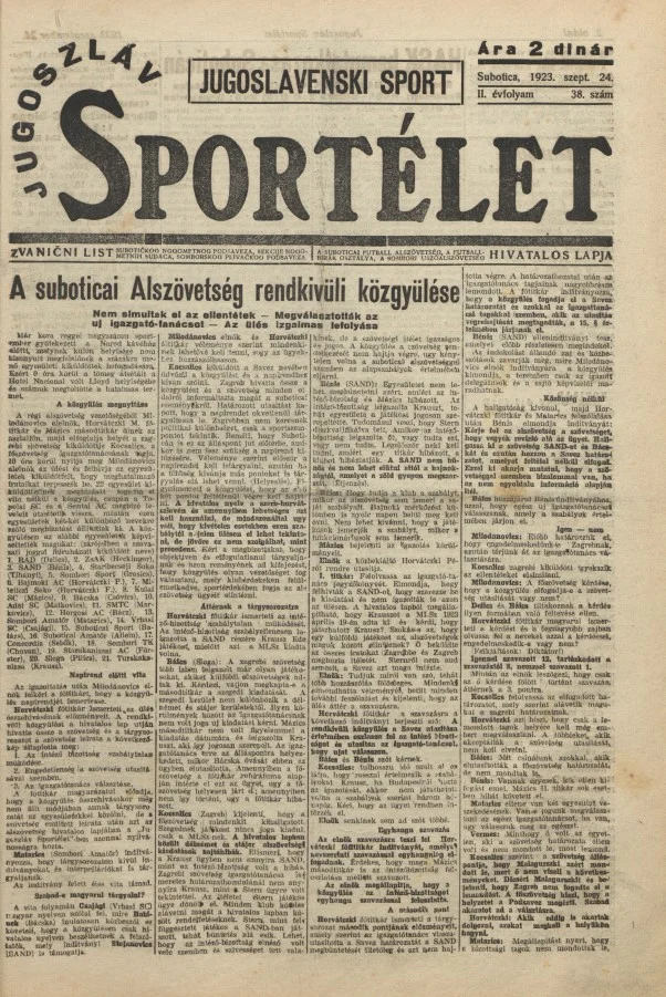 Jugoszláv sportélet, 2. évf. 1923. szeptember 24. 38. sz.