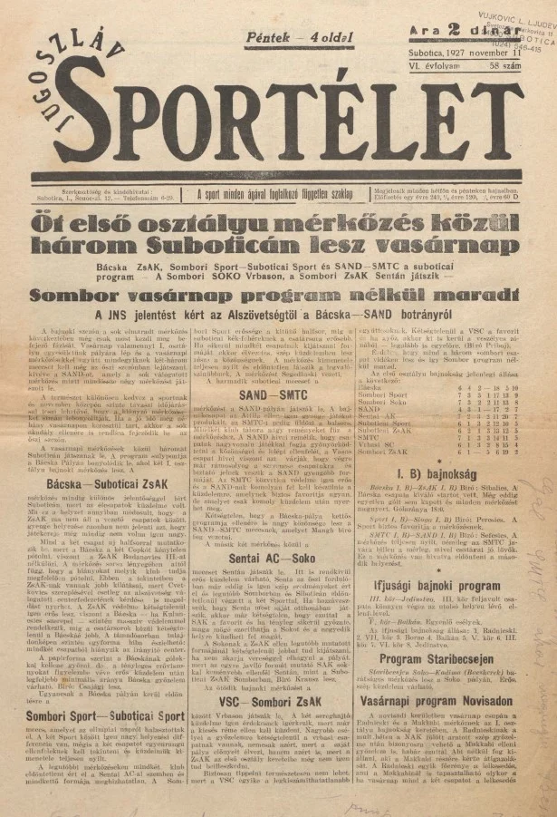 Jugoszláv sportélet, 6. évf. 1927. november 11. 58. sz.