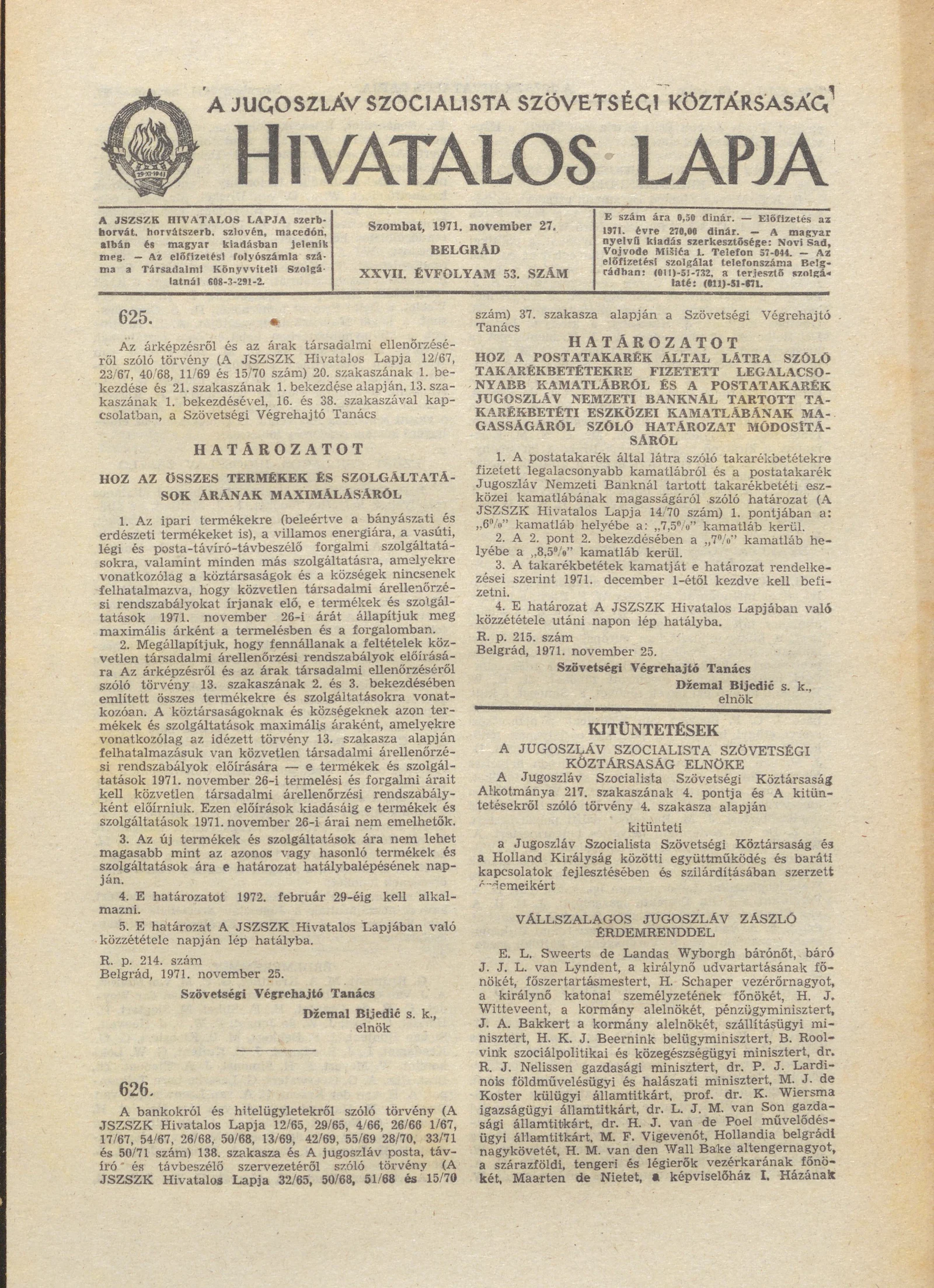 - A Jugoszláv Szocialista Szövetségi Köztársaság Hivatalos Lapja