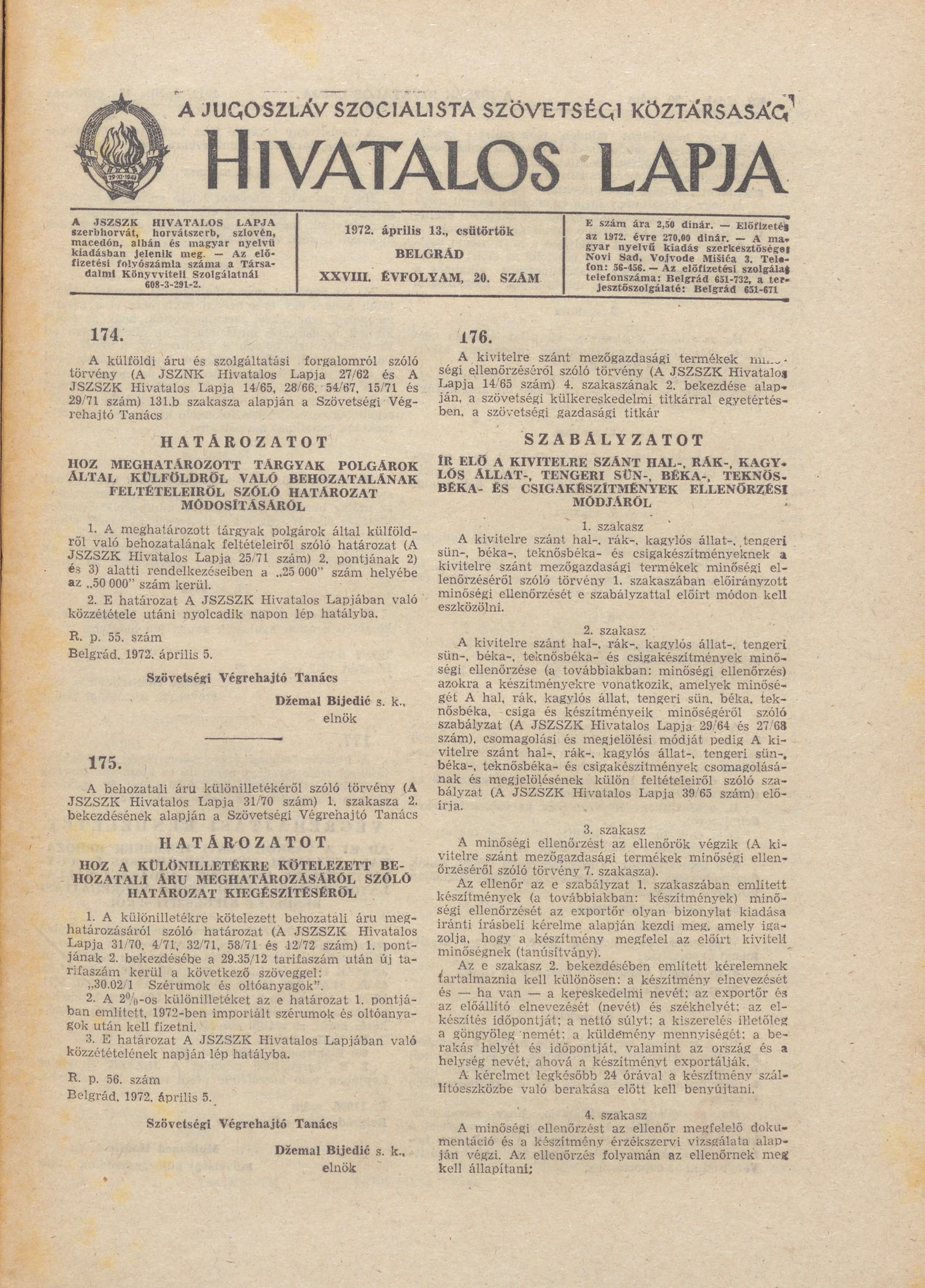 A Jugoszláv Szocialista Szövetségi Köztársaság Hivatalos Lapja, 28. évf. 1972. április 13. 20. sz. 401–408. oldal