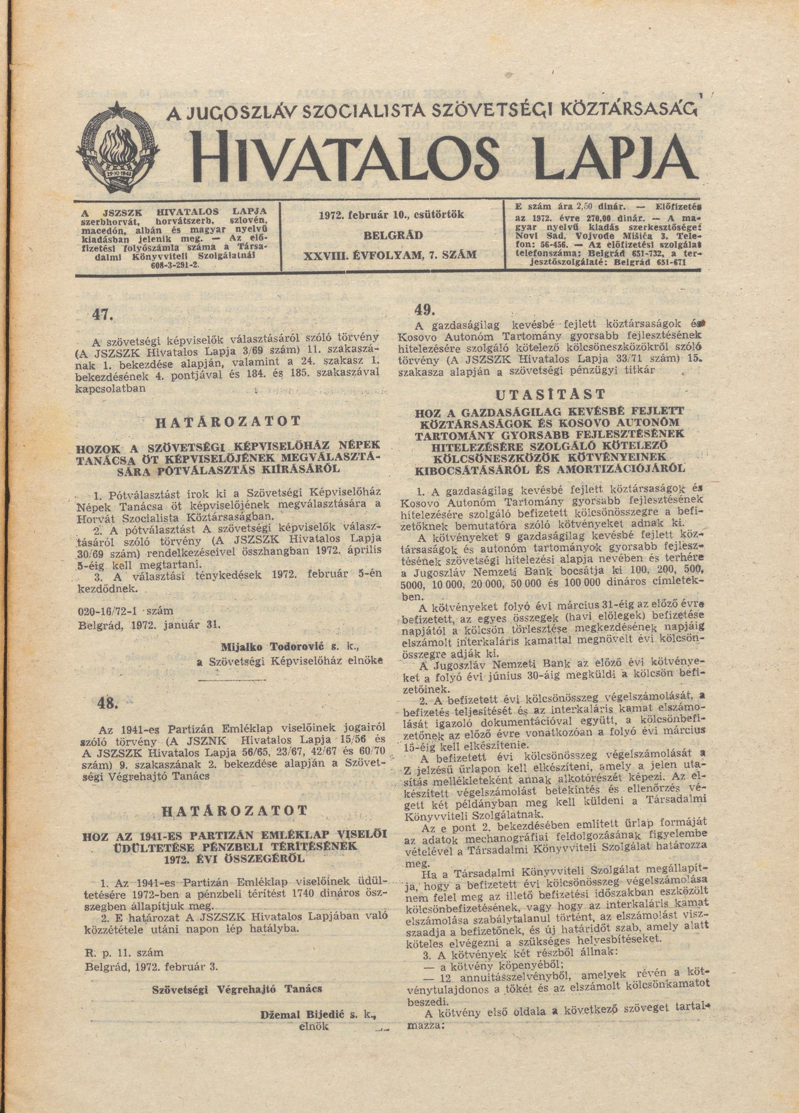 A Jugoszláv Szocialista Szövetségi Köztársaság Hivatalos Lapja, 28. évf. 1972. február 10. 7. sz. 201–216. oldal