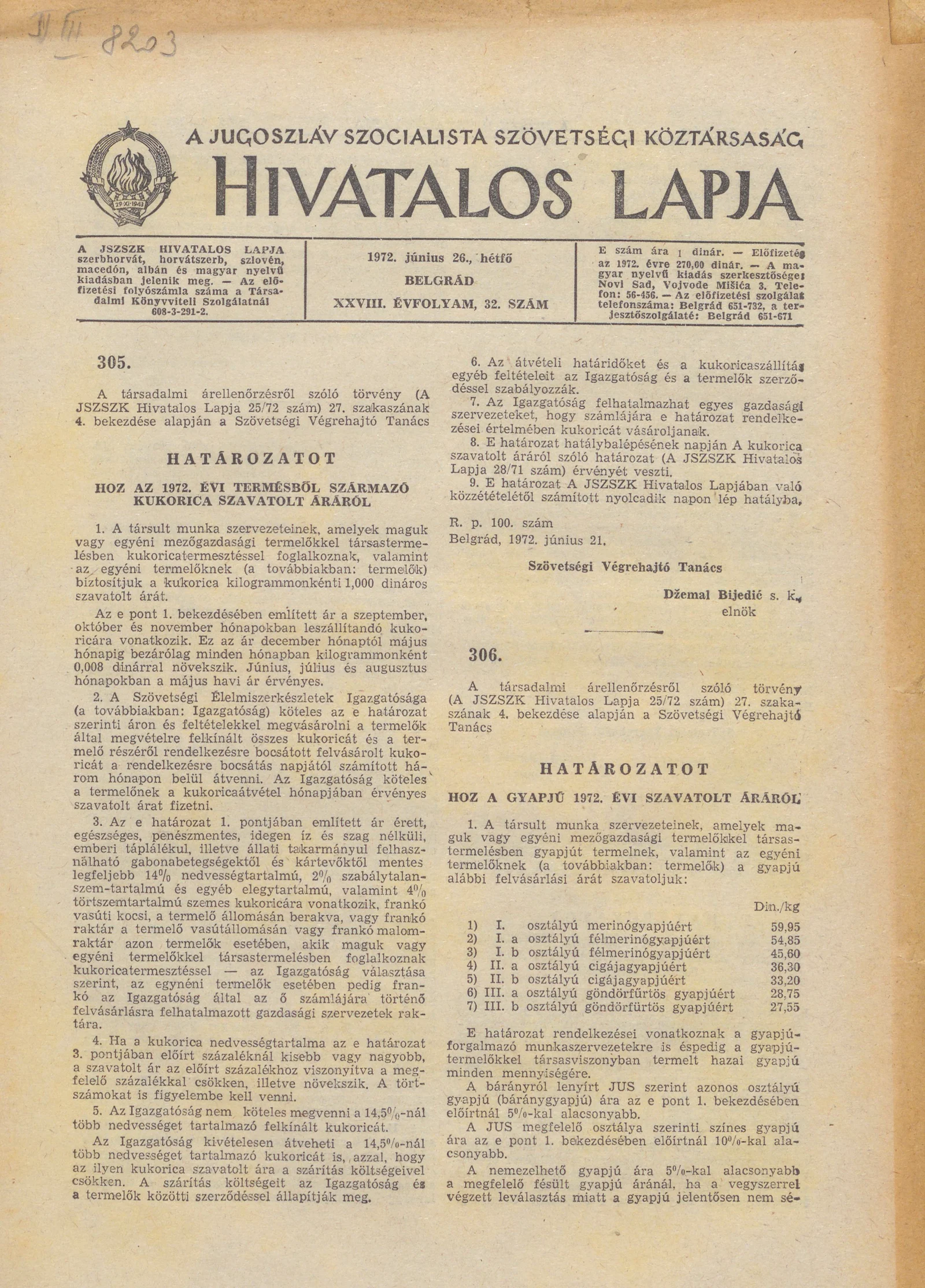 - Határozat az 1972. évi szavatolt jószágárakról621