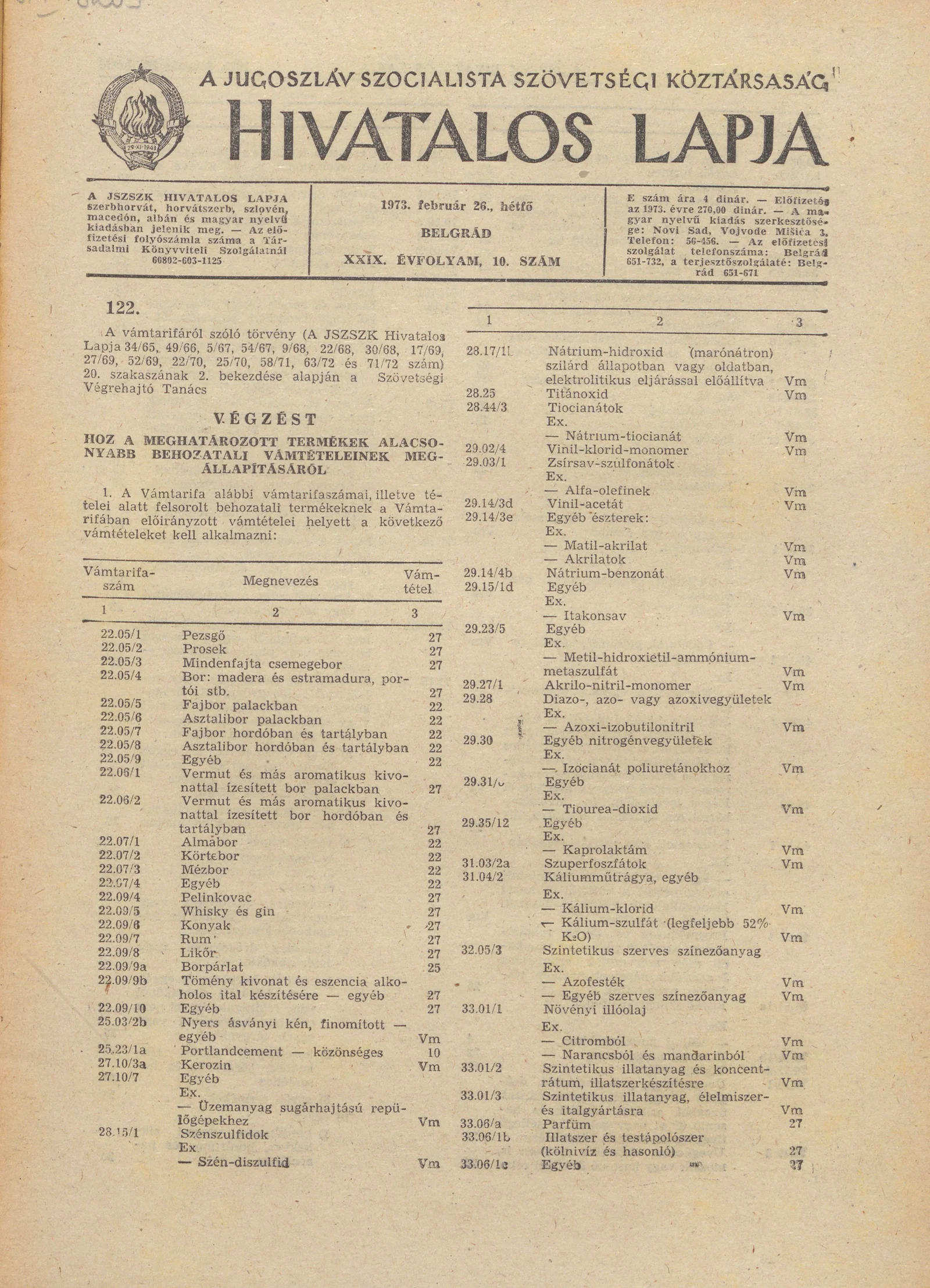 A Jugoszláv Szocialista Szövetségi Köztársaság Hivatalos Lapja, 29. évf. 1973. február 26. 10. sz. 213–244. oldal