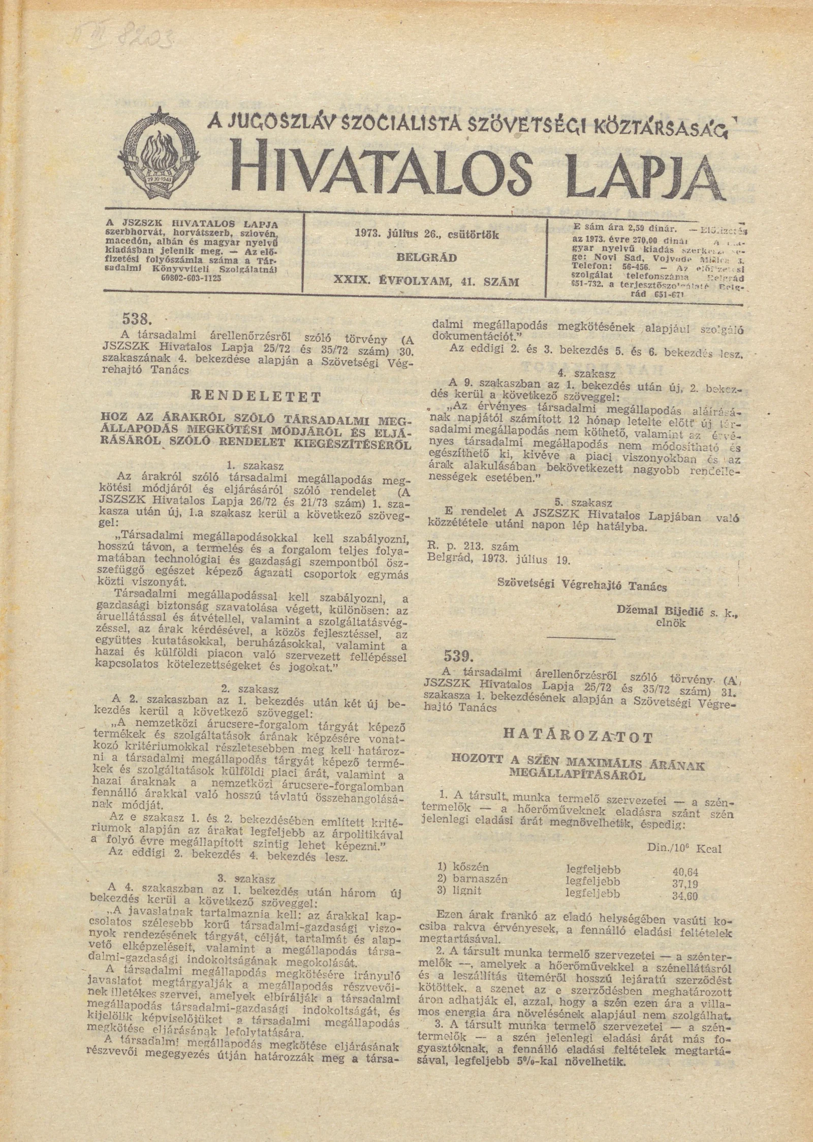 - Határozat a szén maximális árának megállapításáról 1253