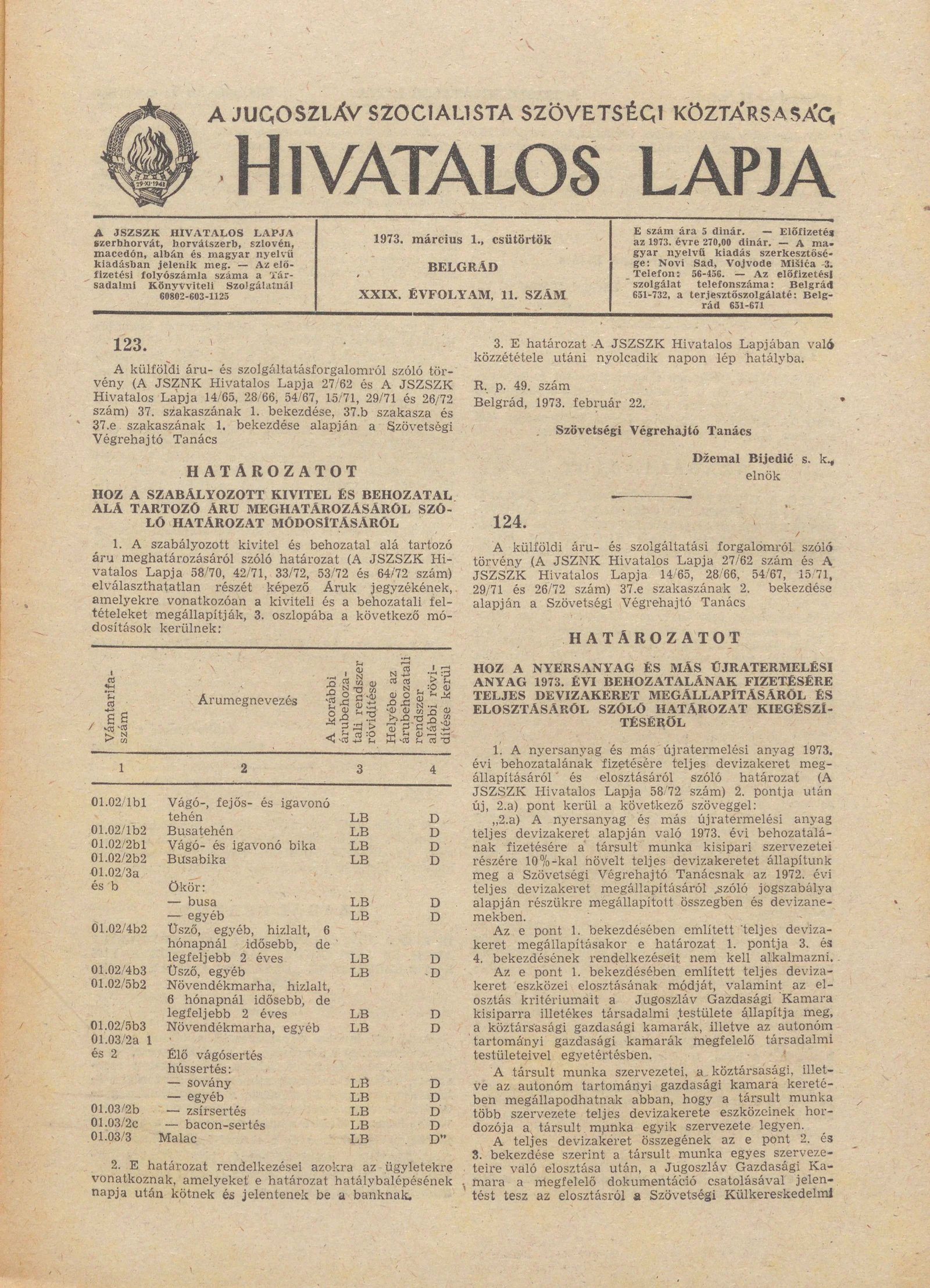 A Jugoszláv Szocialista Szövetségi Köztársaság Hivatalos Lapja, 29. évf. 1973. március 1. 11. sz. 245–284. oldal