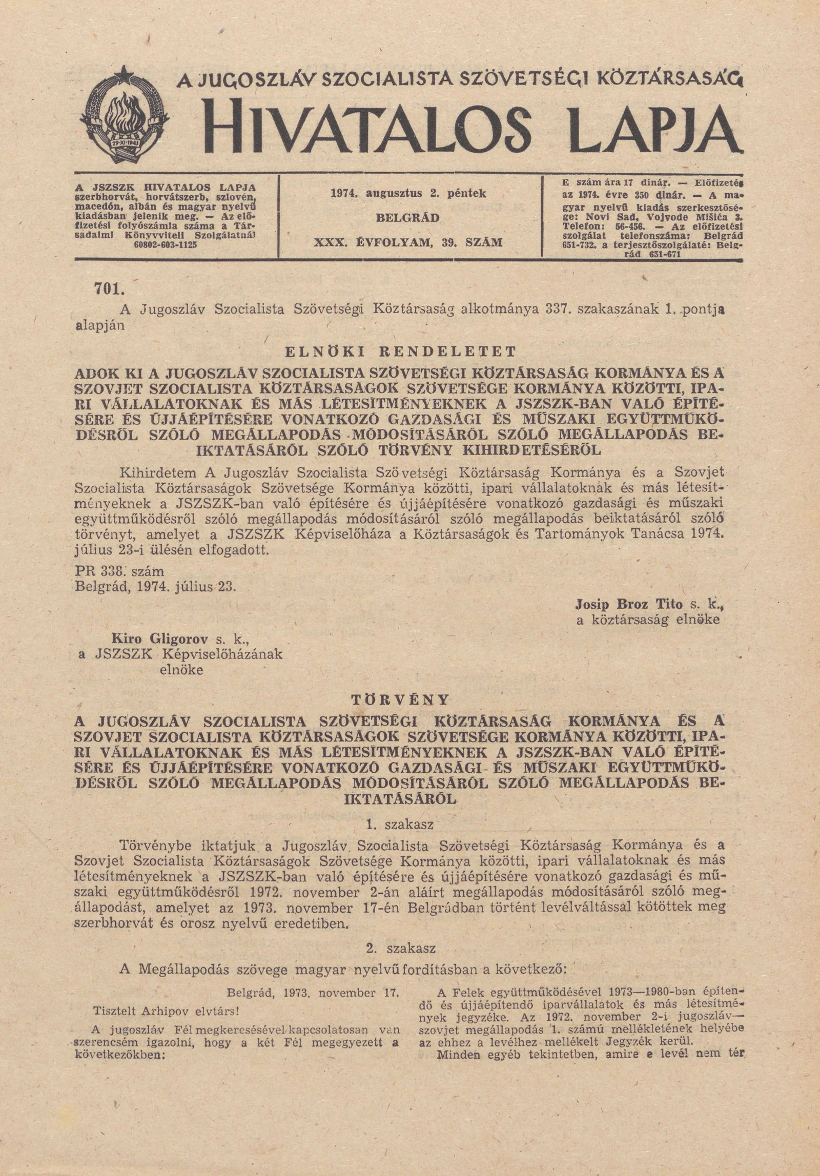- Törvény A Jugoszláv Szocialista Szövetségi Köztársaság Kormánya és a Szovjet Szocialista Köztársaságok Szövetsége Kormánya közötti, ipari vállalatoknak és más létesítményeknek a JSZSZK-ban való építésére és újjáépítésére vonatkozó gazdasági és műszaki...1281