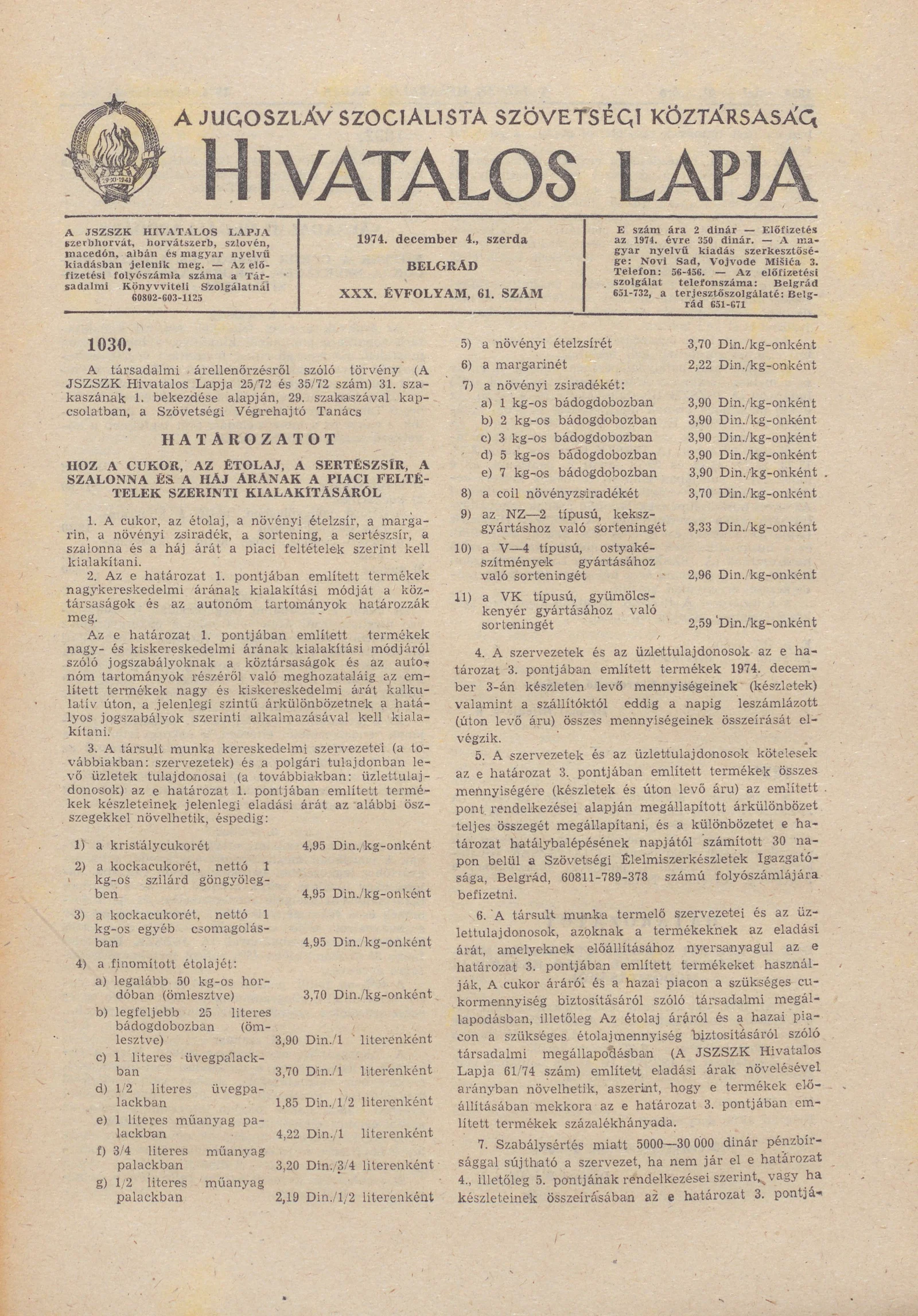 A Jugoszláv Szocialista Szövetségi Köztársaság Hivatalos Lapja, 30. évf. 1974. december 4. 61. sz. 1853–1860. oldal