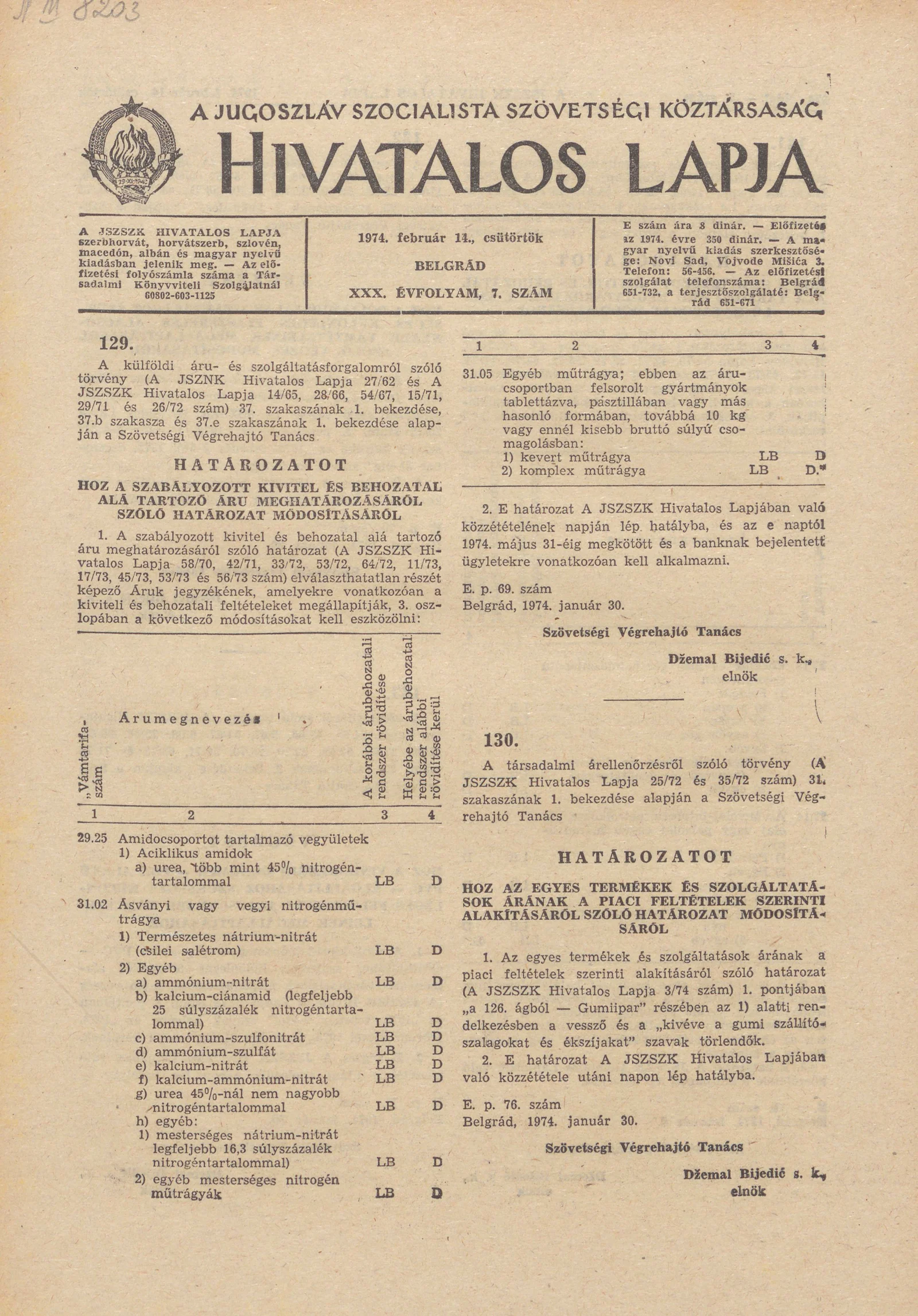 A Jugoszláv Szocialista Szövetségi Köztársaság Hivatalos Lapja, 30. évf. 1974. február 14. 7. sz. 173–196. oldal