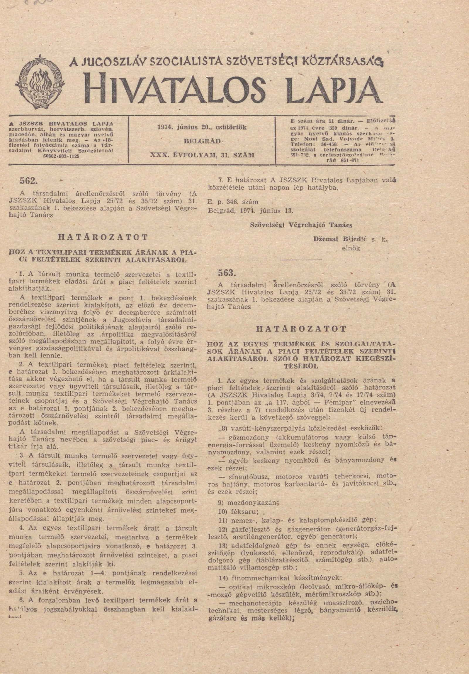 - Határozat a textilipari termékek árának a piaci feltételek szerinti alakításáról1077
