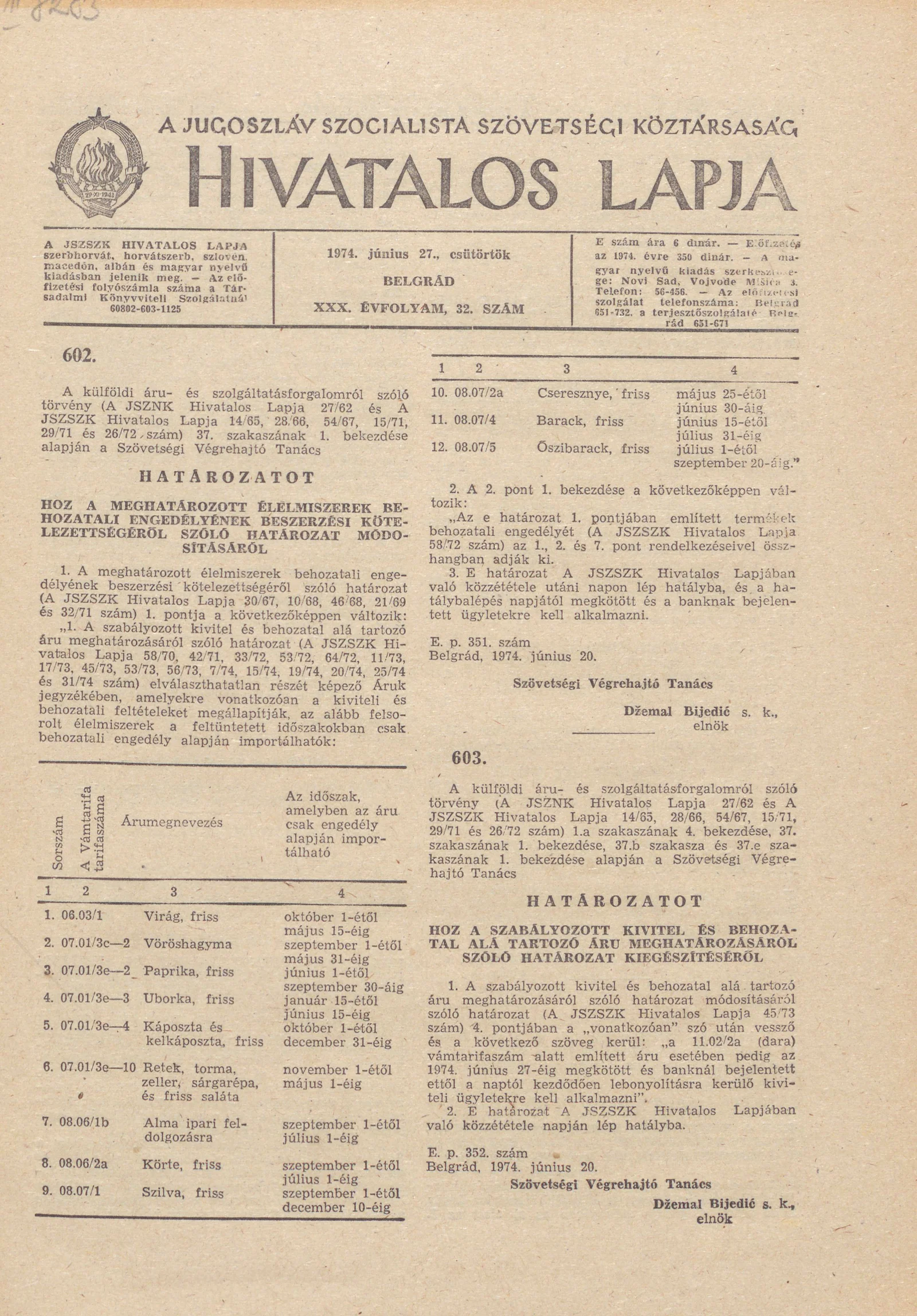 - A Jugoszláv Szocialista Szövetségi Köztársaság Hivatalos Lapja