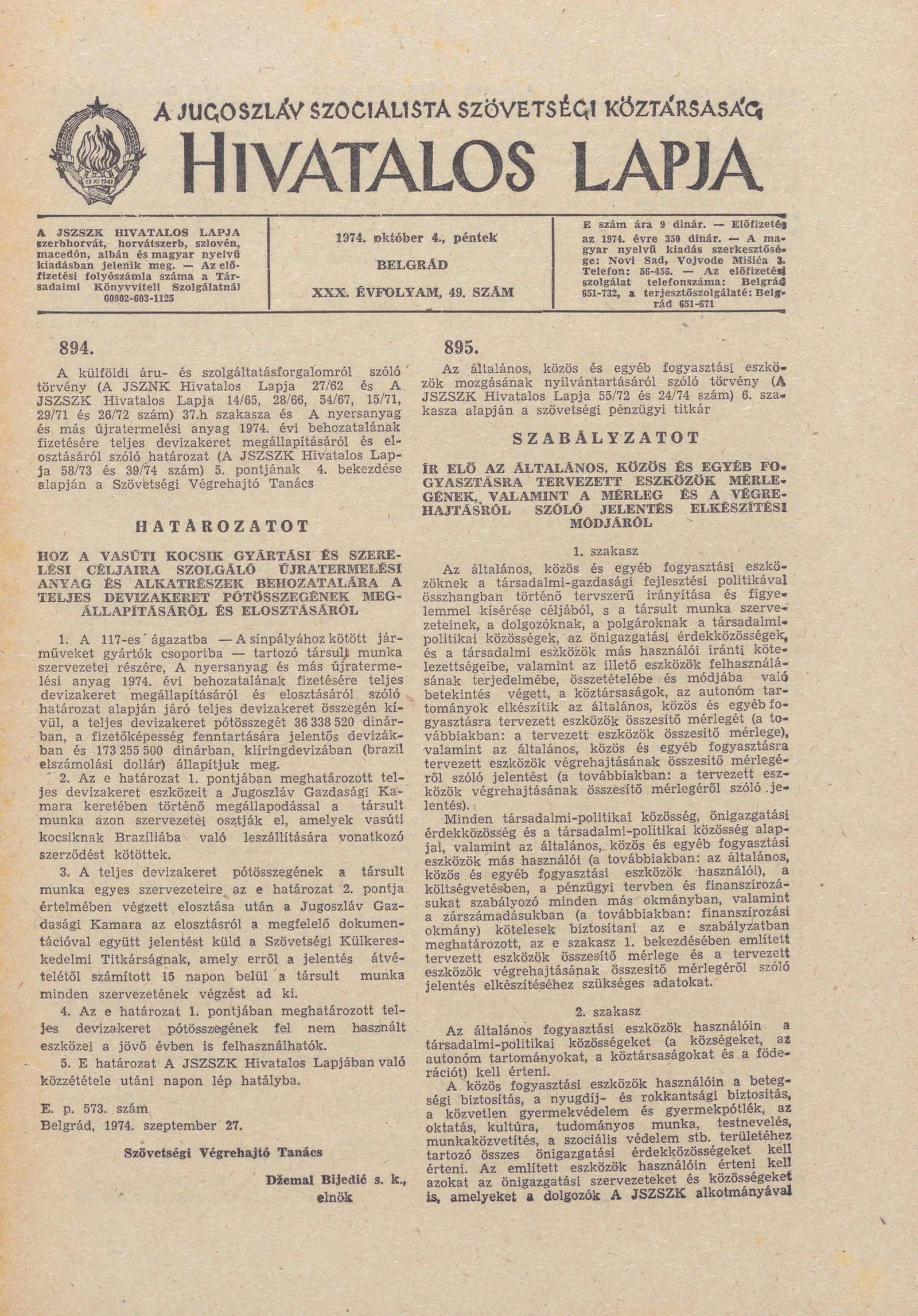 A Jugoszláv Szocialista Szövetségi Köztársaság Hivatalos Lapja, 30. évf. 1974. október 4. 49. sz. 1473–1484. oldal