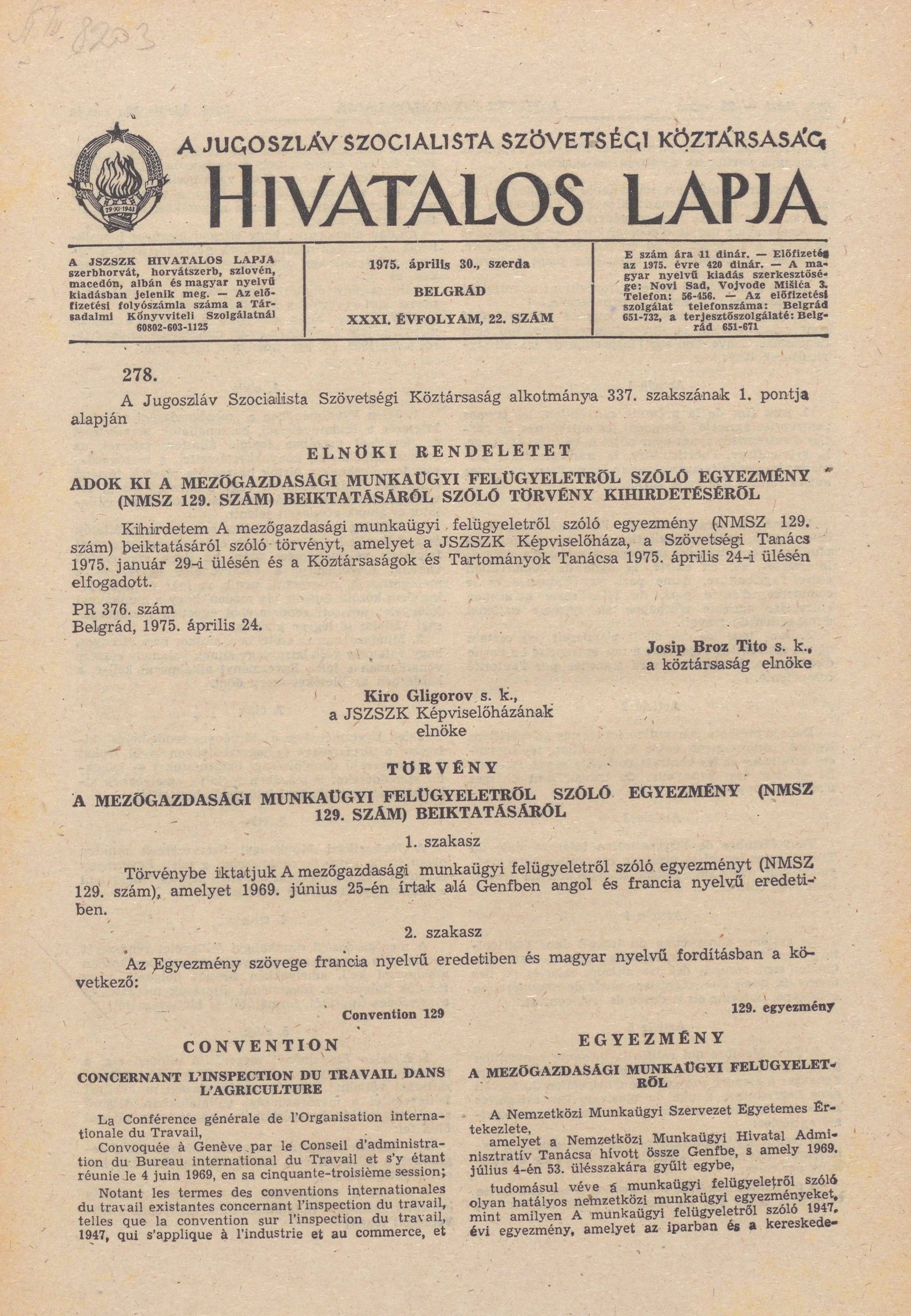 A Jugoszláv Szocialista Szövetségi Köztársaság Hivatalos Lapja, 31. évf. 1975. április 30. 22. sz. 725–752. oldal