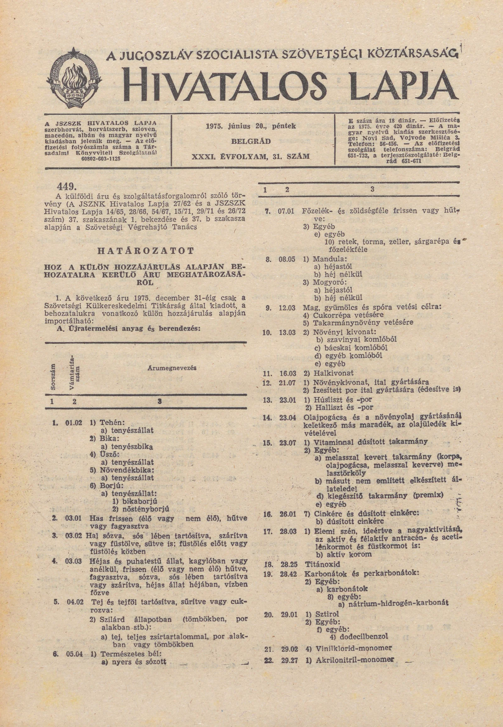 - Határozat a Jugoszláv Nemzeti Bankot 1975-ben megillető kamatrész megállapításáról958