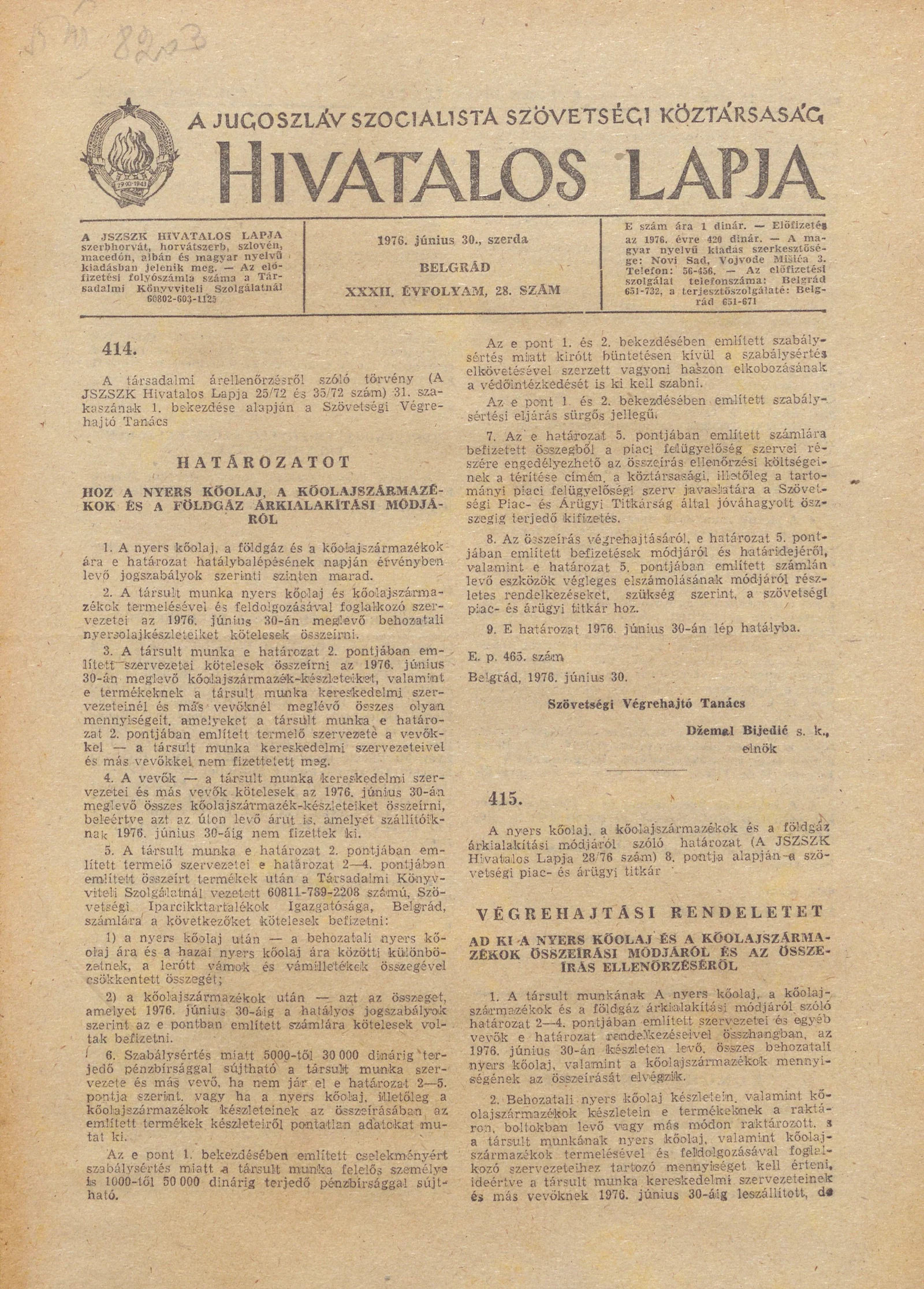 A Jugoszláv Szocialista Szövetségi Köztársaság Hivatalos Lapja, 32. évf. 1976. június 30. 28. sz. 681–684. oldal
