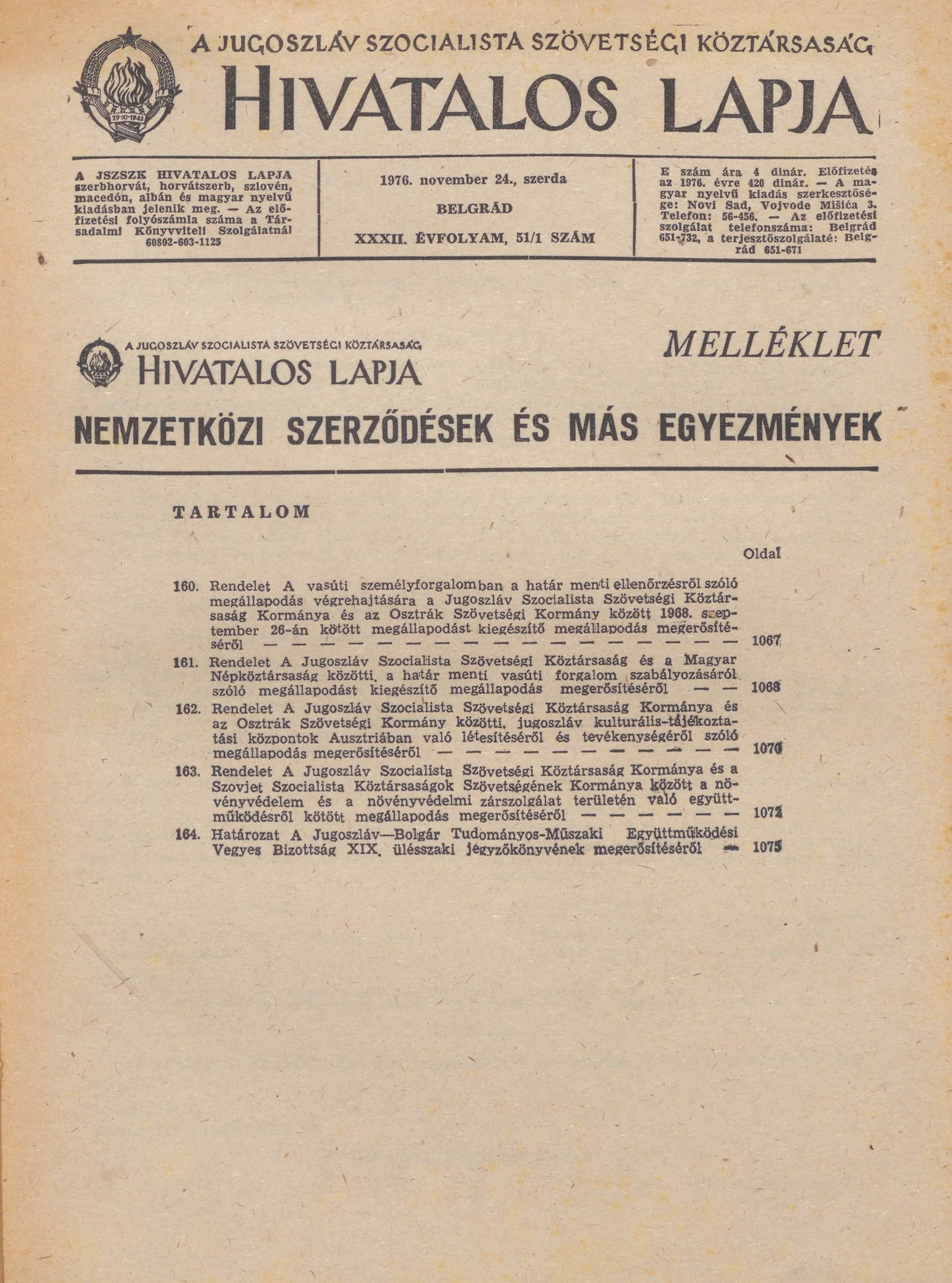 A Jugoszláv Szocialista Szövetségi Köztársaság Hivatalos Lapja, 32. évf. 1976. november 24. 51. sz.