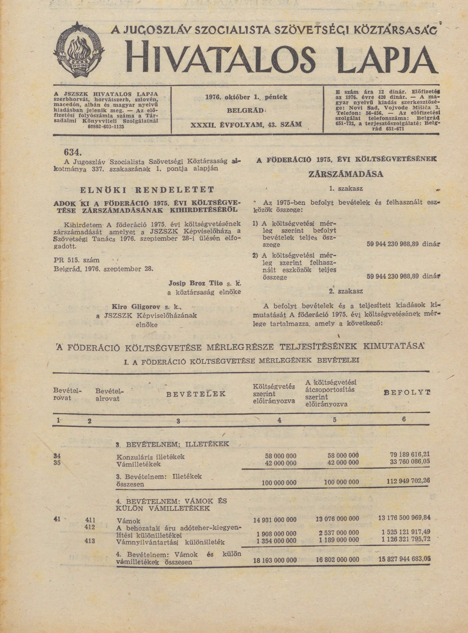 - Zárszámadása a föderáció 1975. évi költségvetésének 1289