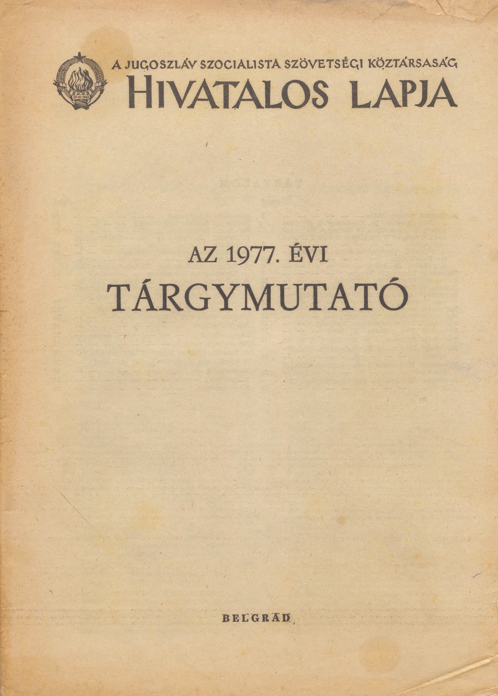 - A Jugoszláv Szocialista Szövetségi Köztársaság Hivatalos Lapja