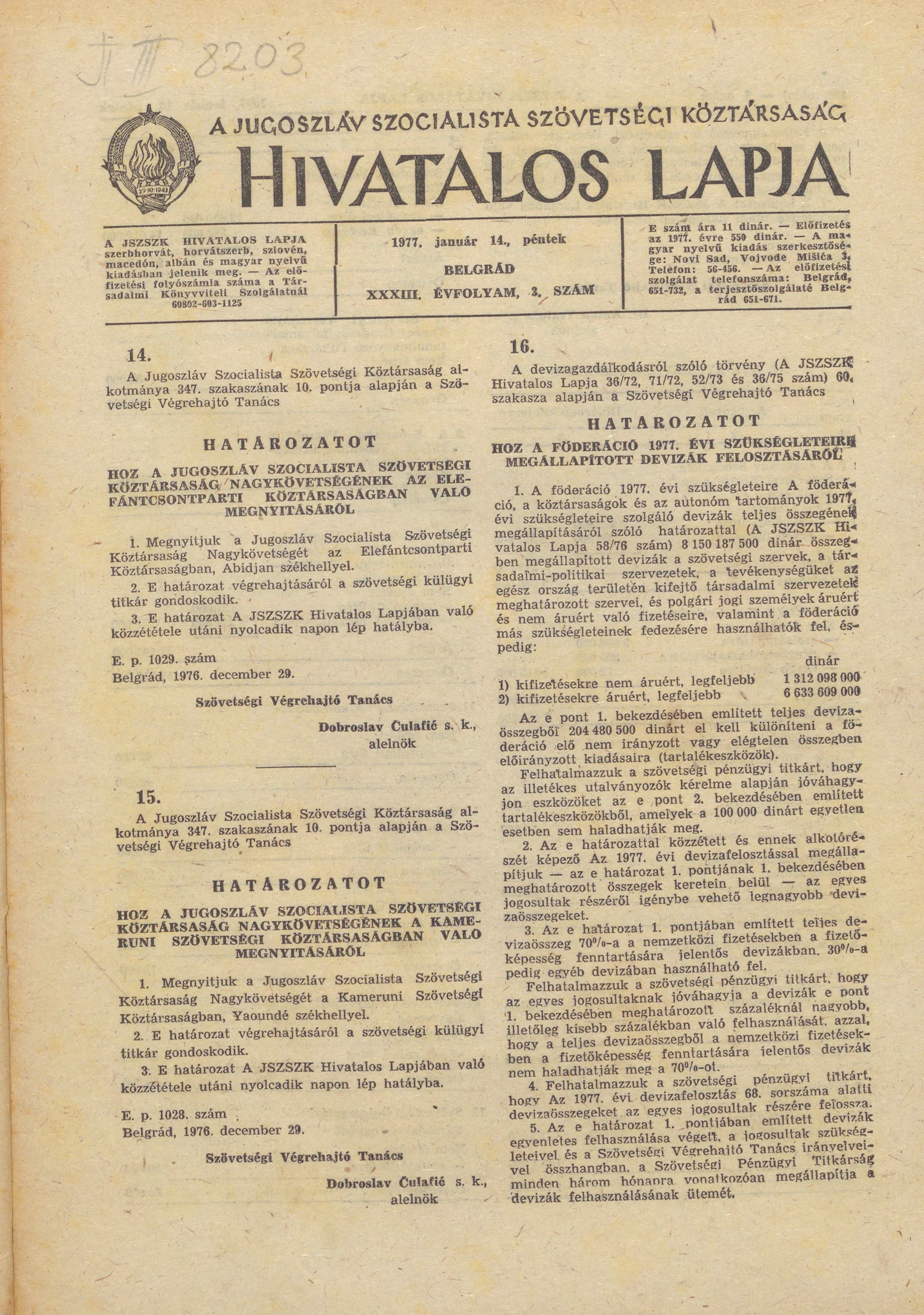 - Határozat a föderáció 1977. évi szükségleteire megállapított devizák felosztásáról 101