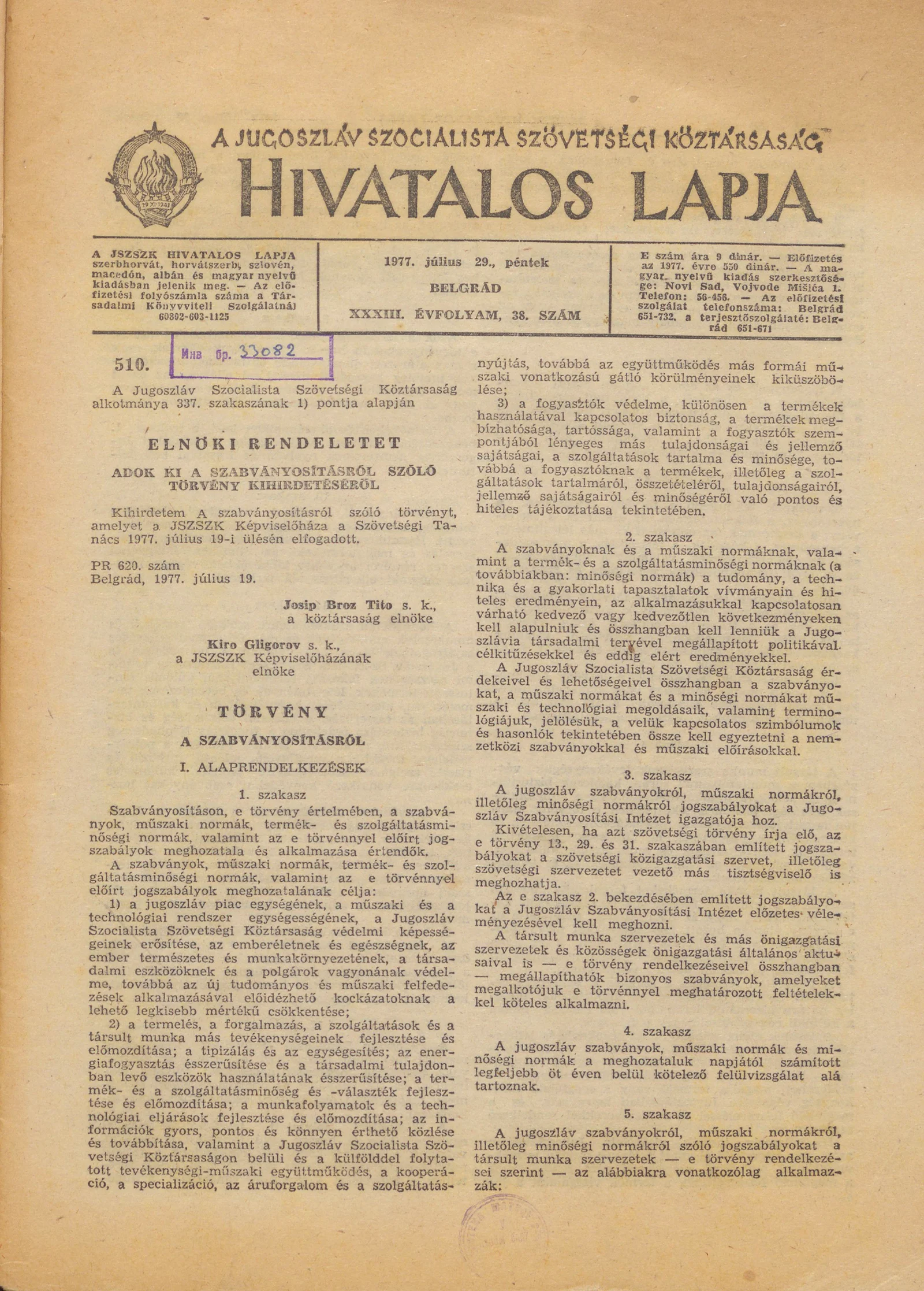 - Végzés a hidraulikai gumicsövek jugoszláv szabványairól 1535