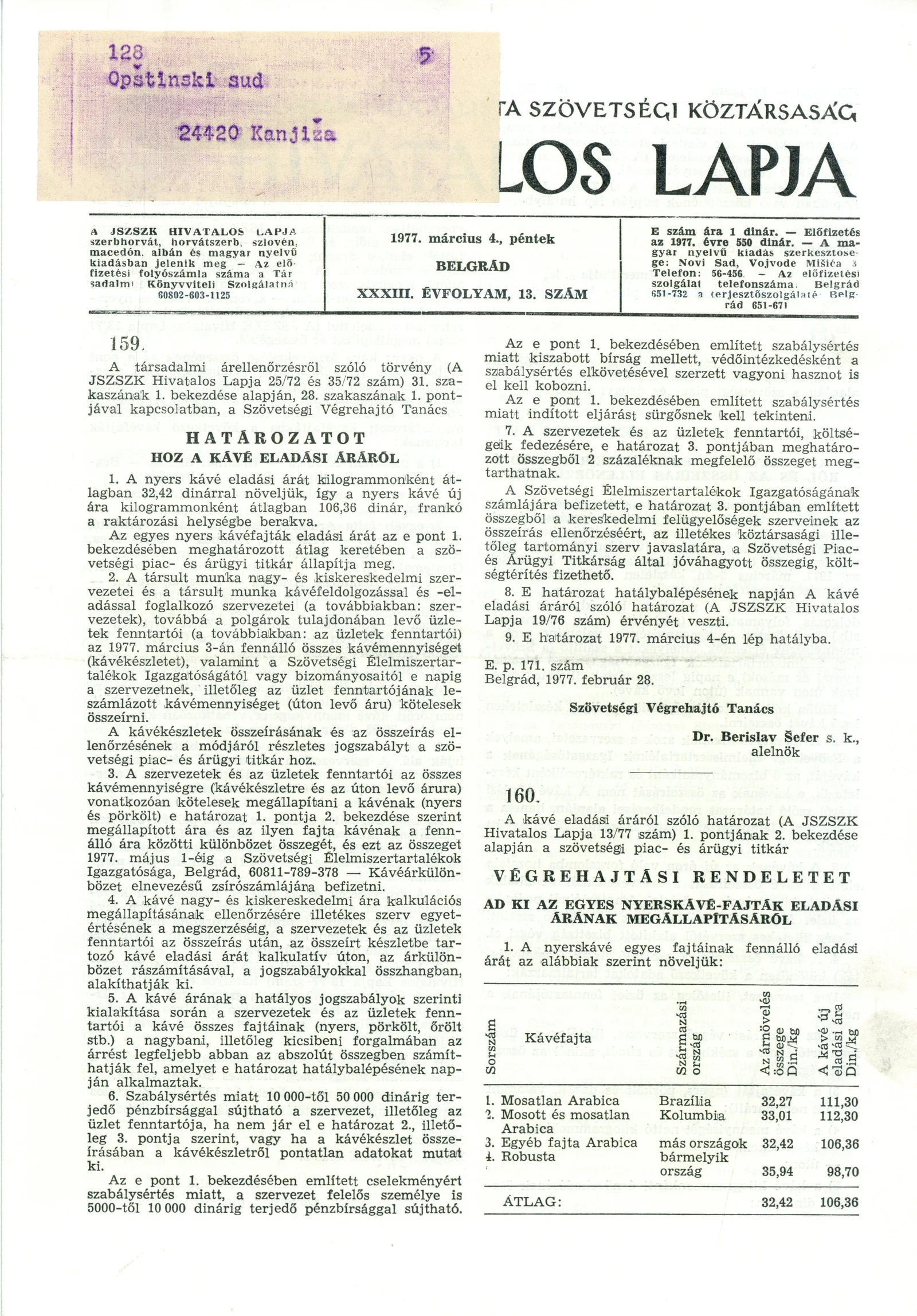 A Jugoszláv Szocialista Szövetségi Köztársaság Hivatalos Lapja, 33. évf. 1977. március 4. 13. sz. 569–572. oldal