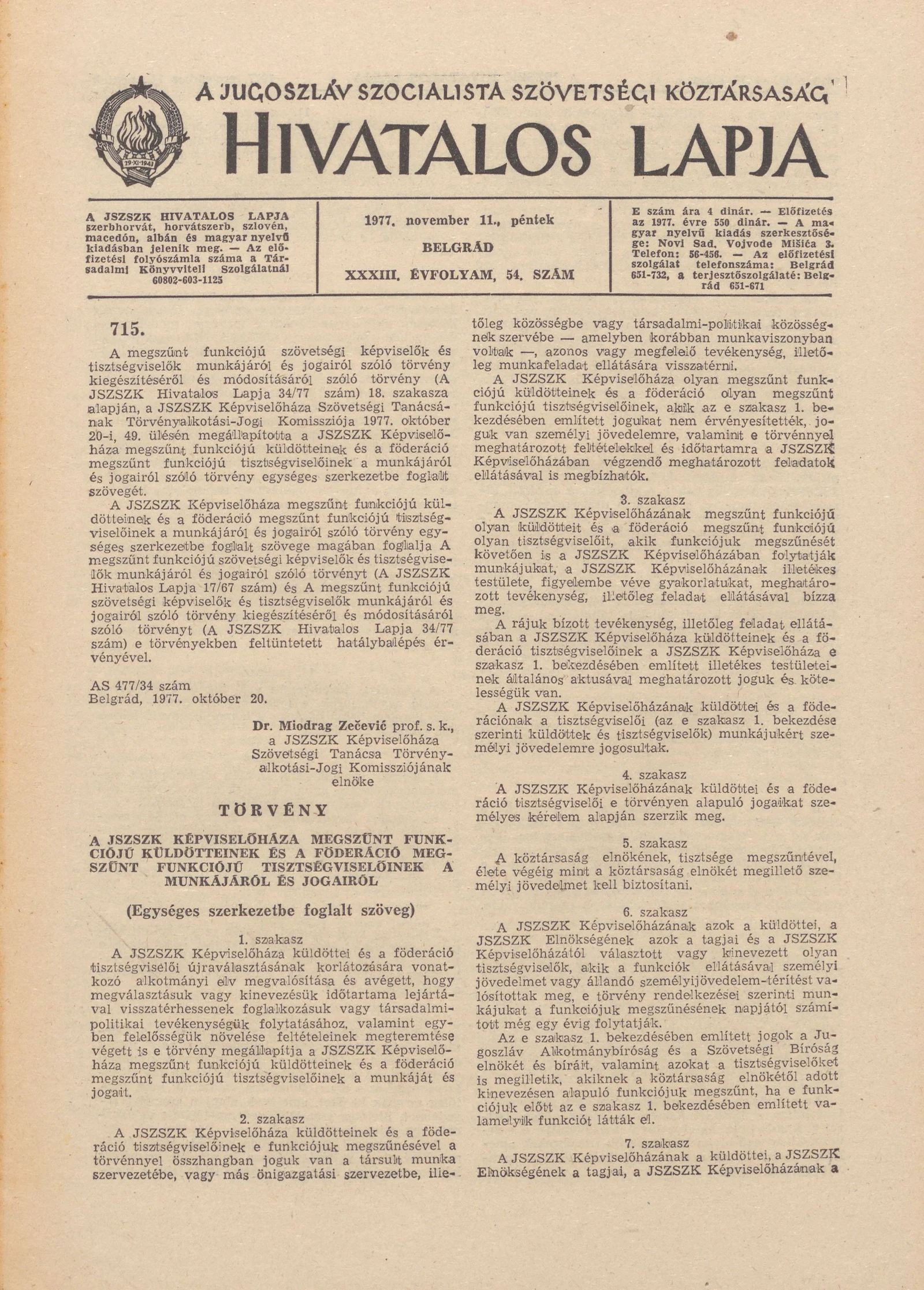 A Jugoszláv Szocialista Szövetségi Köztársaság Hivatalos Lapja, 33. évf. 1977. november 11. 54. sz. 1917–1932. oldal