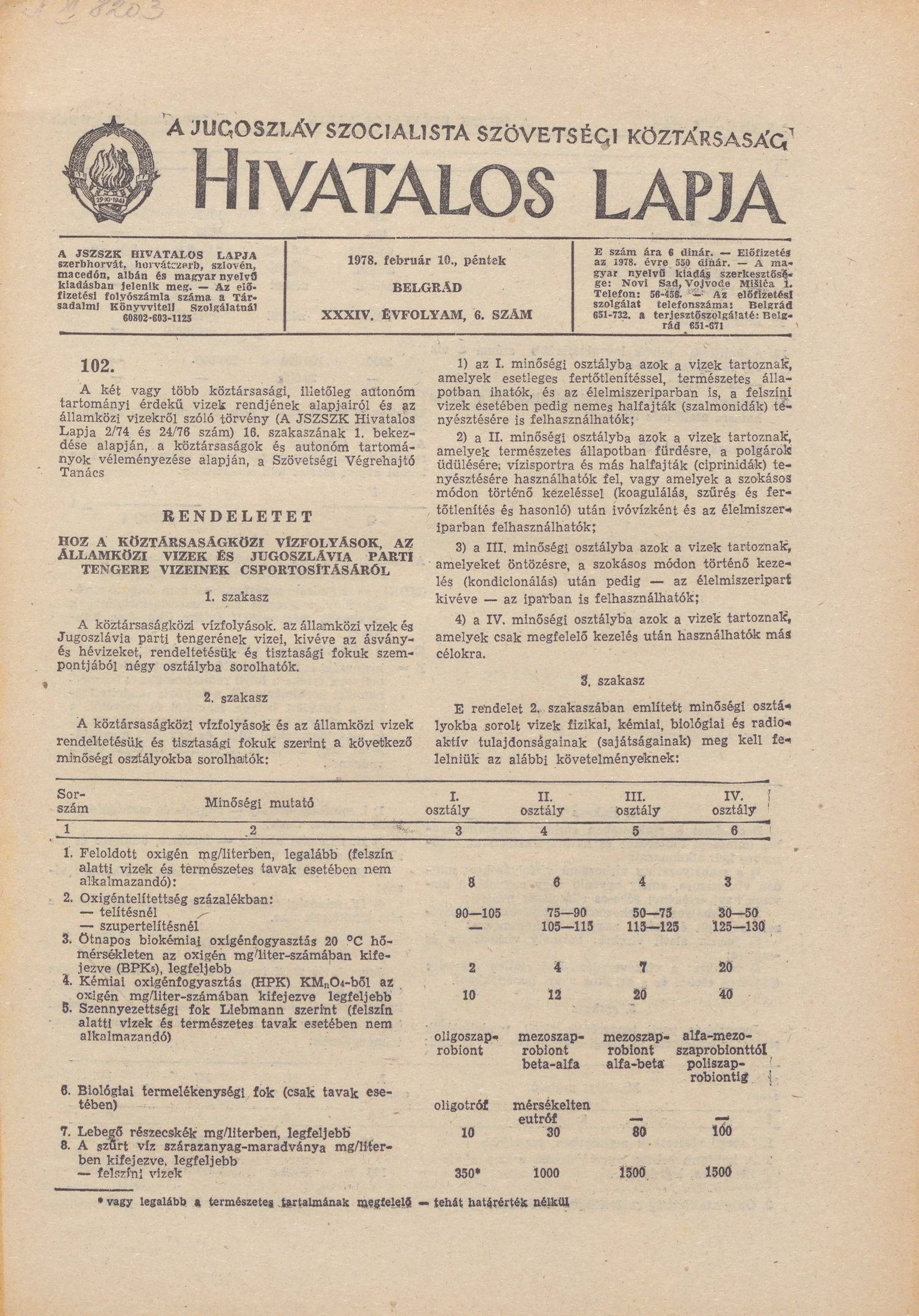 A Jugoszláv Szocialista Szövetségi Köztársaság Hivatalos Lapja, 34. évf. 1978. február 10. 6. sz. 145–168. oldal