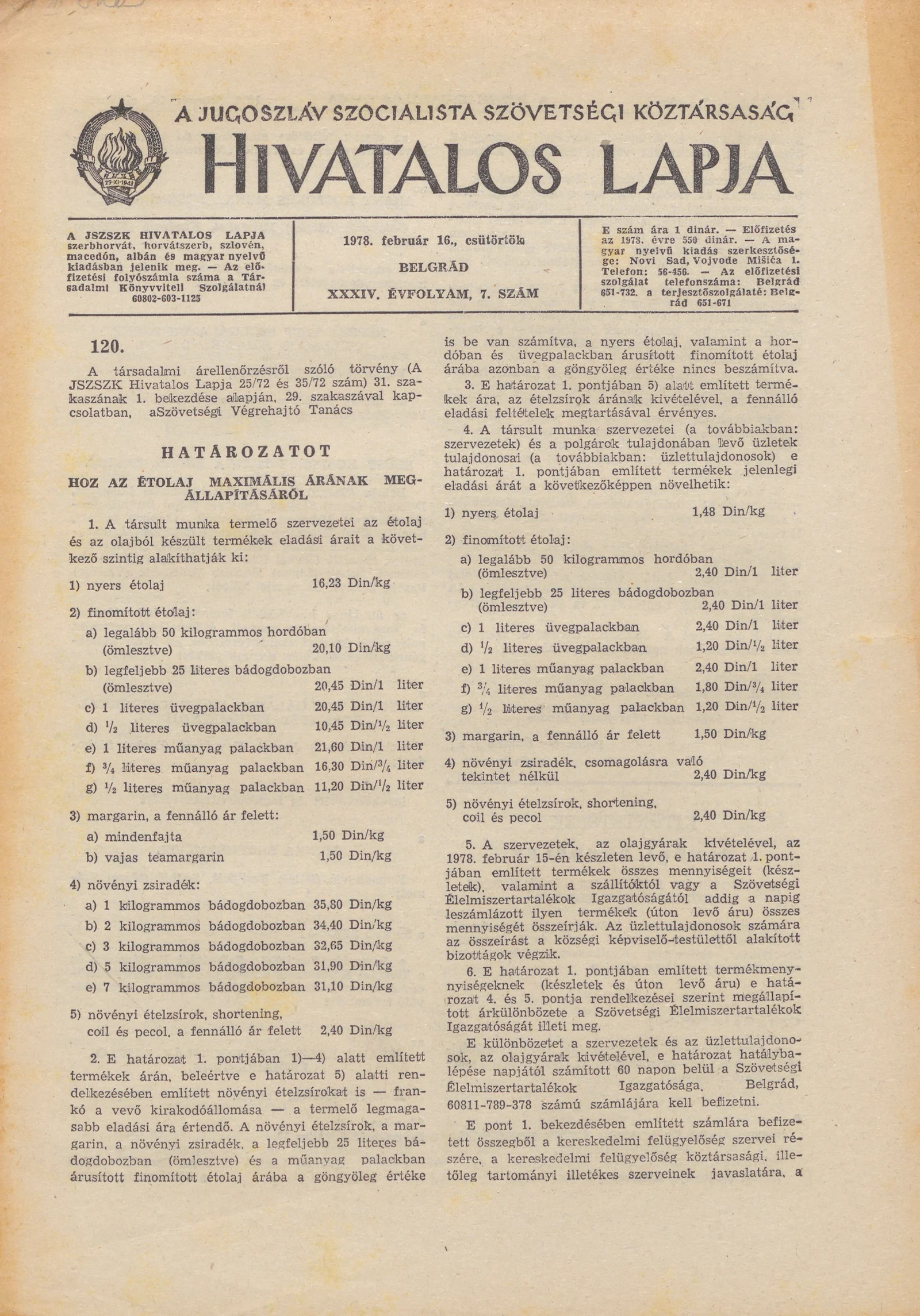 A Jugoszláv Szocialista Szövetségi Köztársaság Hivatalos Lapja, 34. évf. 1978. február 16. 7. sz. 169–172. oldal