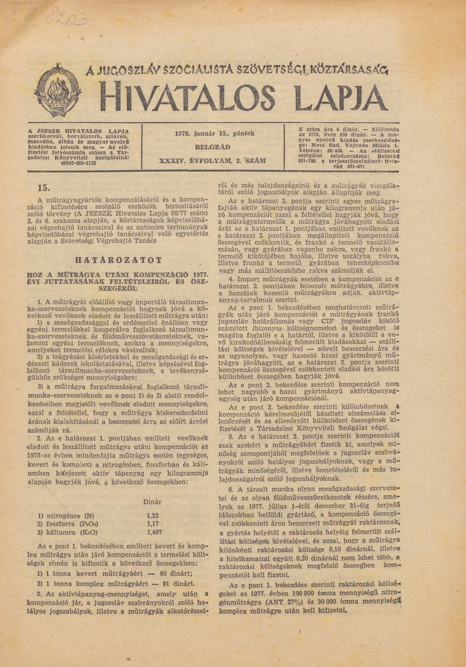 A Jugoszláv Szocialista Szövetségi Köztársaság Hivatalos Lapja, 34. évf. 1978. január 13. 2. sz. 33–56. oldal