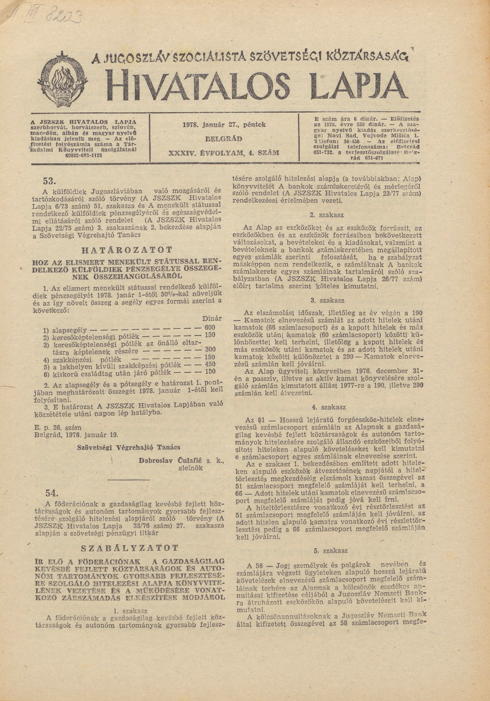 A Jugoszláv Szocialista Szövetségi Köztársaság Hivatalos Lapja, 34. évf. 1978. január 27. 4. sz. 73–96. oldal
