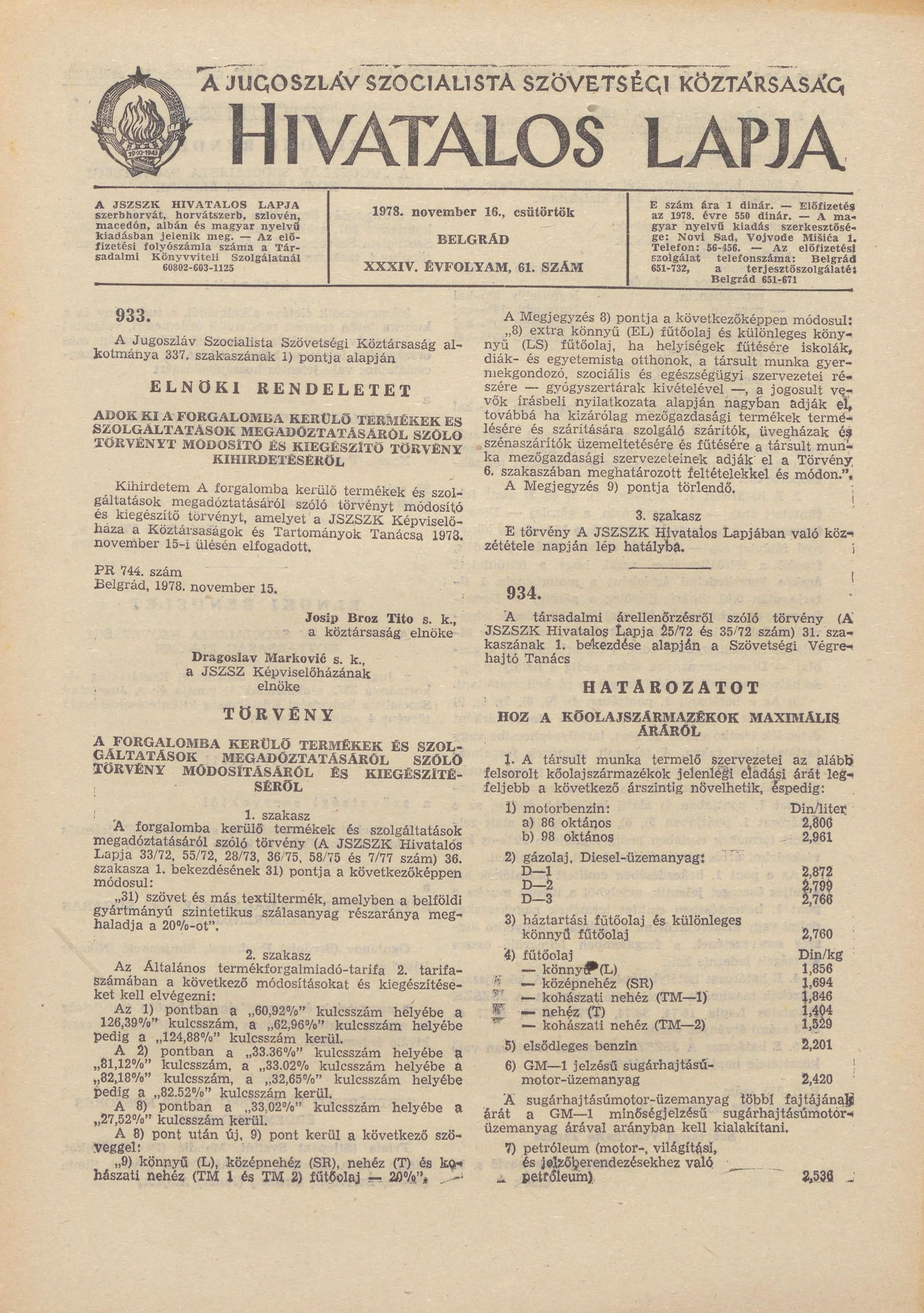 A Jugoszláv Szocialista Szövetségi Köztársaság Hivatalos Lapja, 34. évf. 1978. november 16. 61. sz. 2401–2404. oldal