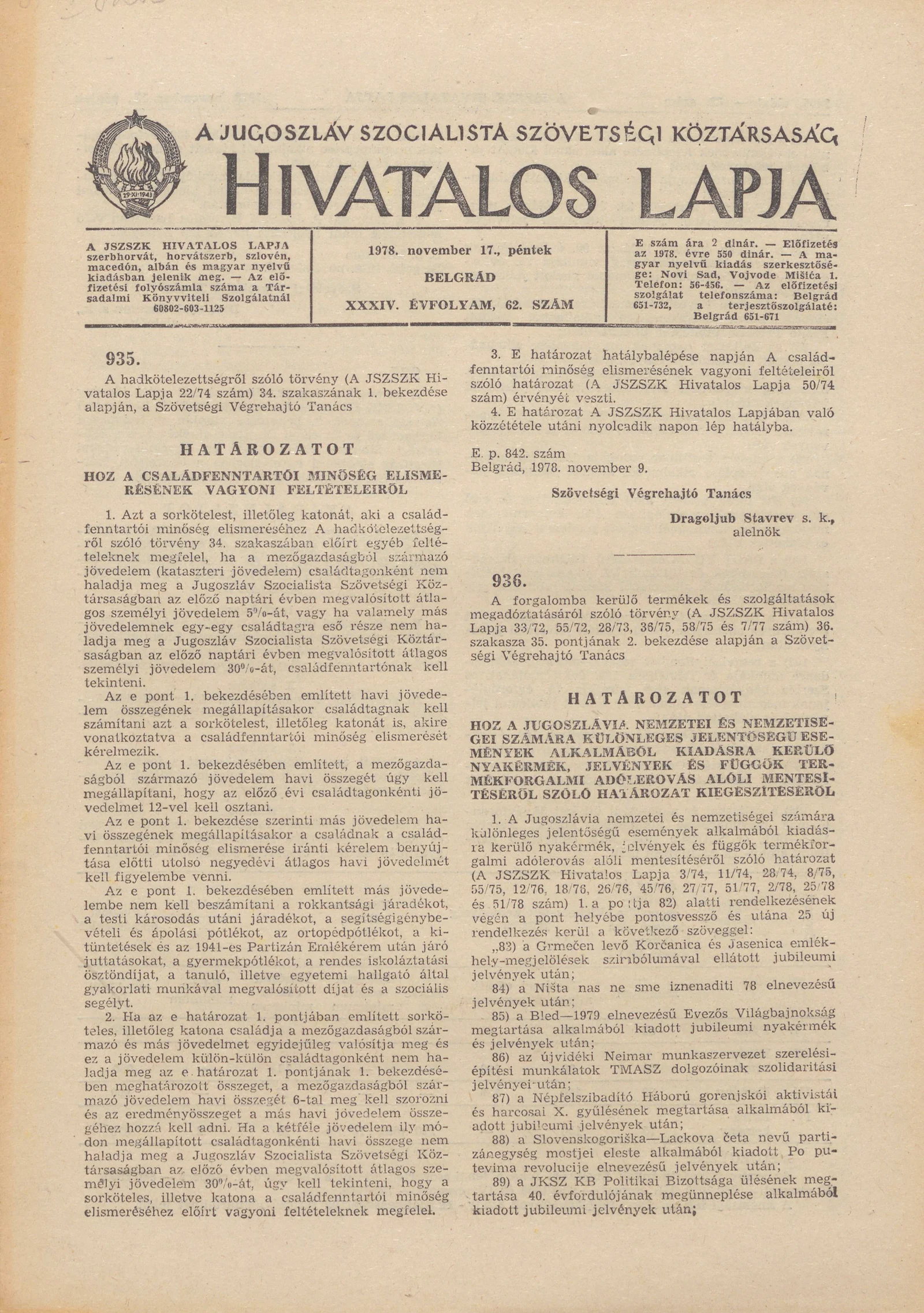 A Jugoszláv Szocialista Szövetségi Köztársaság Hivatalos Lapja, 34. évf. 1978. november 17. 62. sz. 2405–2412. oldal