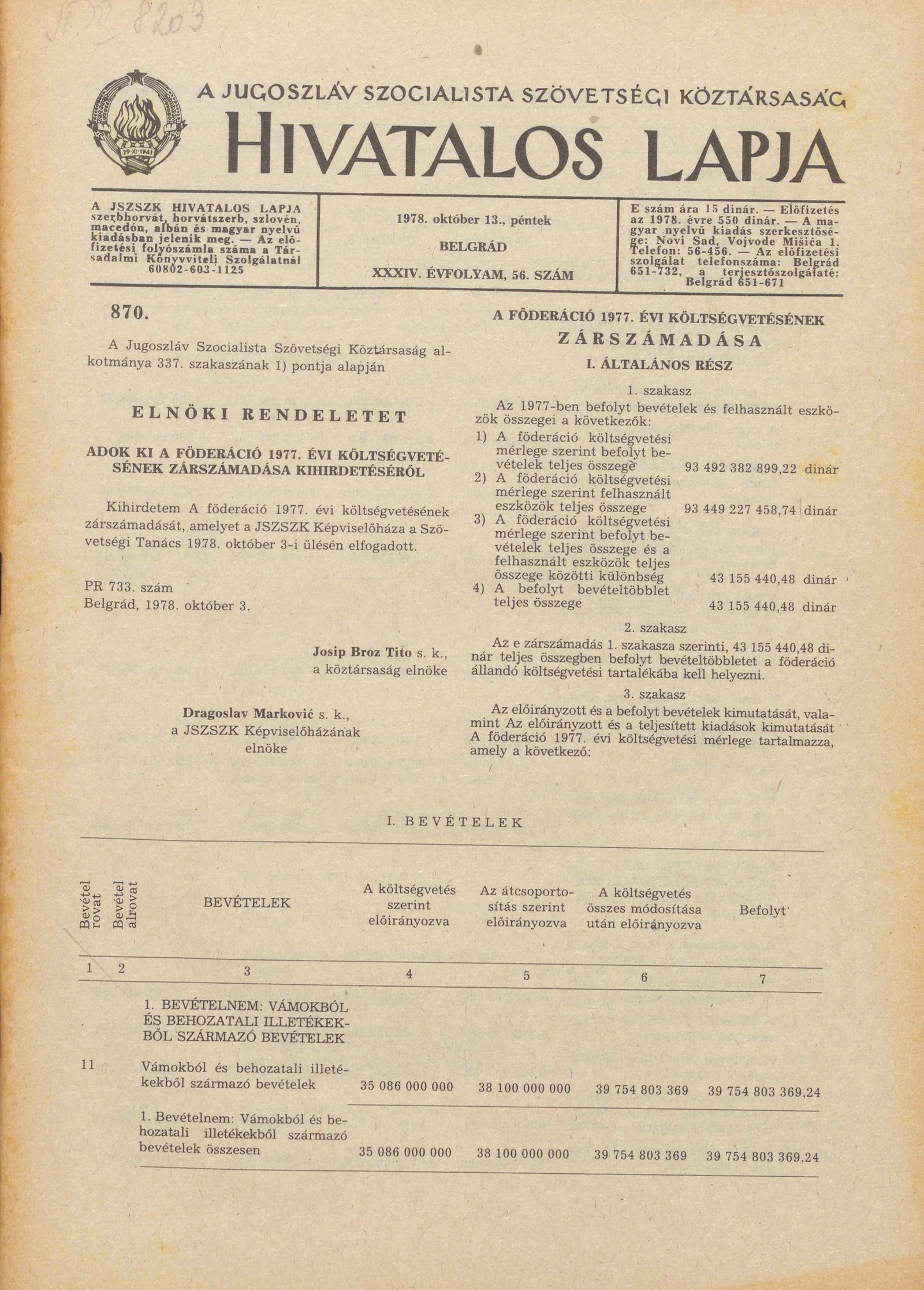 A Jugoszláv Szocialista Szövetségi Köztársaság Hivatalos Lapja, 34. évf. 1978. október 13. 56. sz. 2273–2332. oldal