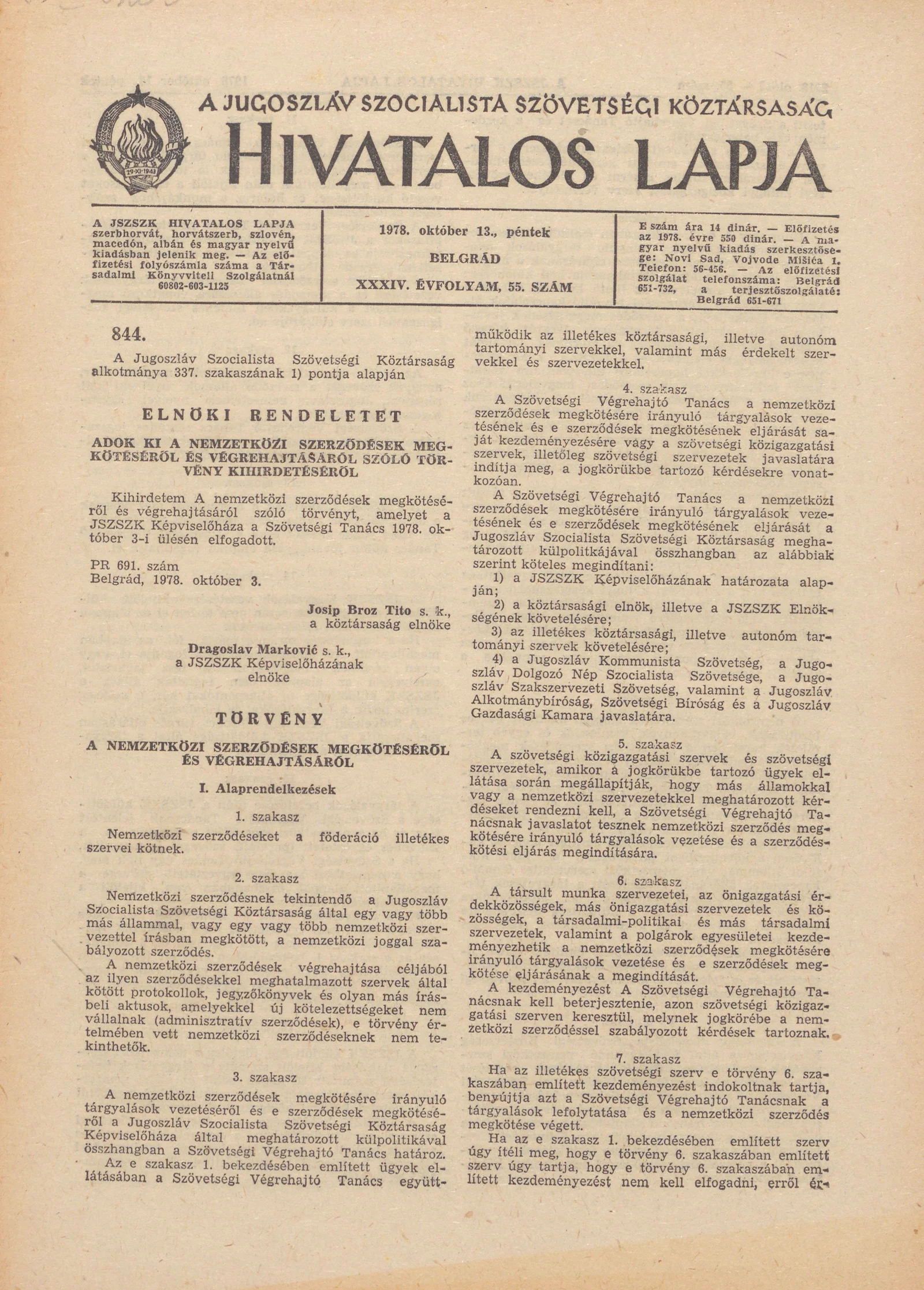 A Jugoszláv Szocialista Szövetségi Köztársaság Hivatalos Lapja, 34. évf. 1978. október 13. 55. sz. 2217–2272. oldal