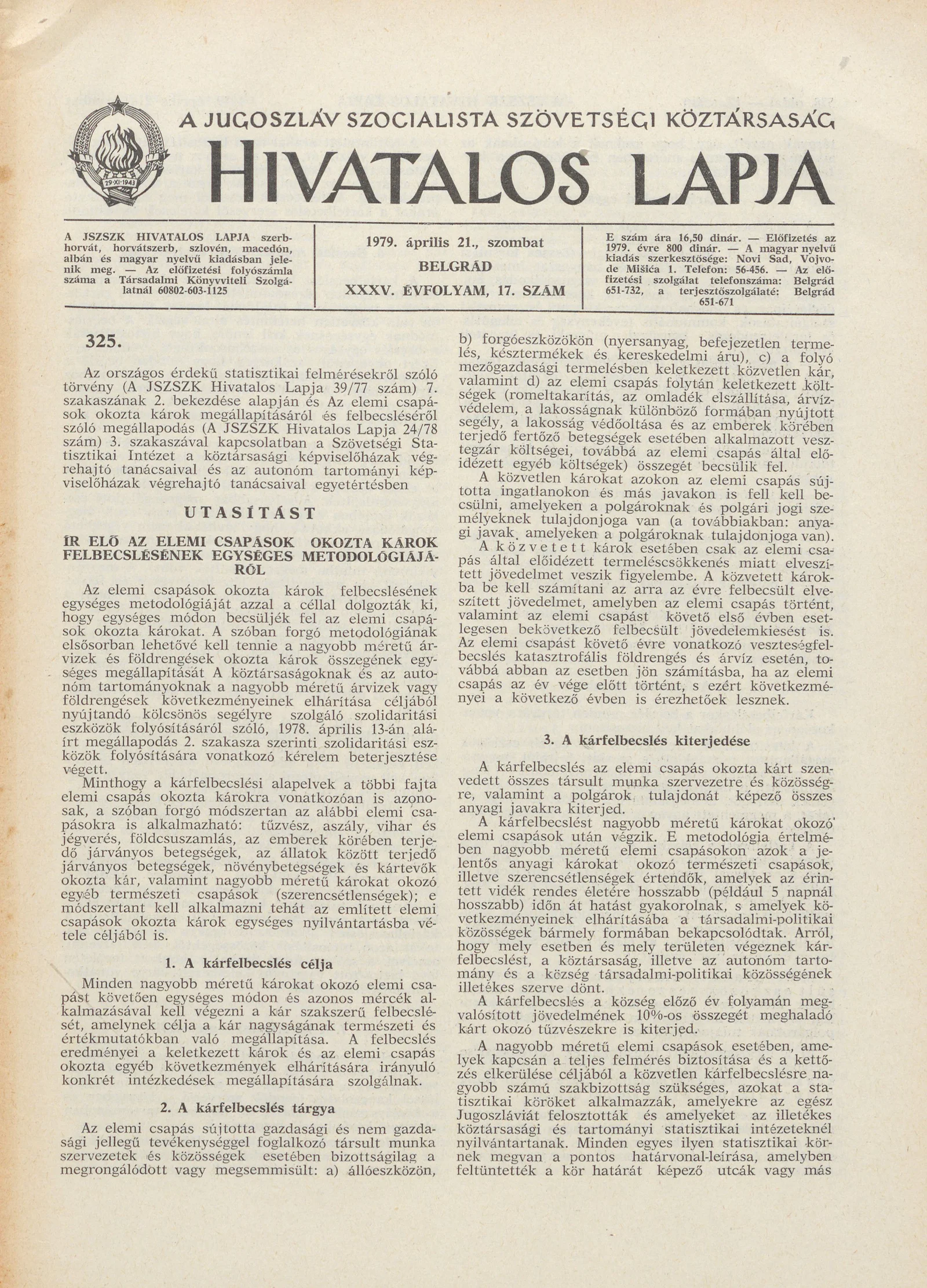 A Jugoszláv Szocialista Szövetségi Köztársaság Hivatalos Lapja, 35. évf. 1979. április 21. 17. sz. 577–620. oldal