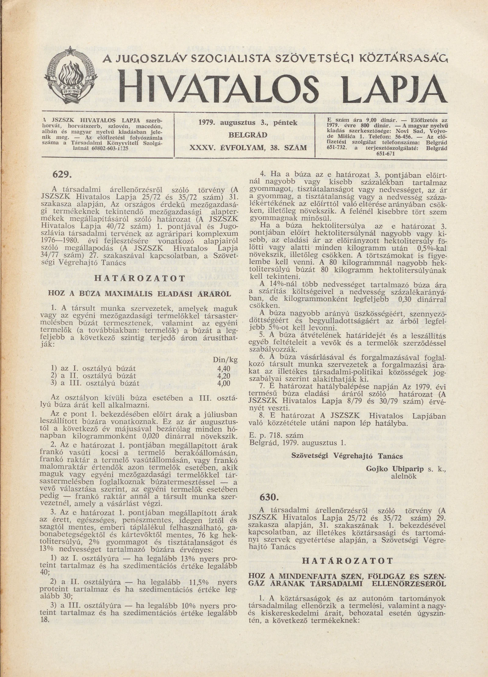 A Jugoszláv Szocialista Szövetségi Köztársaság Hivatalos Lapja, 35. évf. 1979. augusztus 3. 38. sz. 1229–1252. oldal